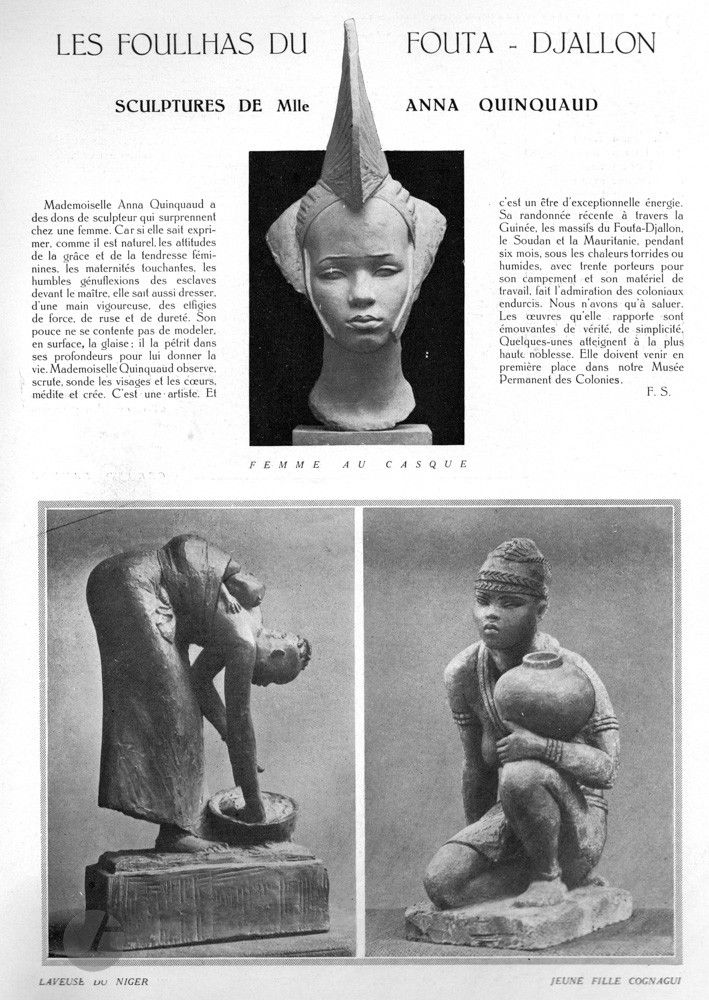 - Anne Doridou-Heim - Anna Quinquaud, exploratrice, sculptrice - Voyage dans les années 30 - Somogy Éditions d'Art, Paris, 2011. The polychrome plaster proof of our sculpture Femme porteuse d'eau Songoï reproduced on pages 68 and 159; the model referenced among the editions of the Manufacture Nationale de Sèvres on page 158.