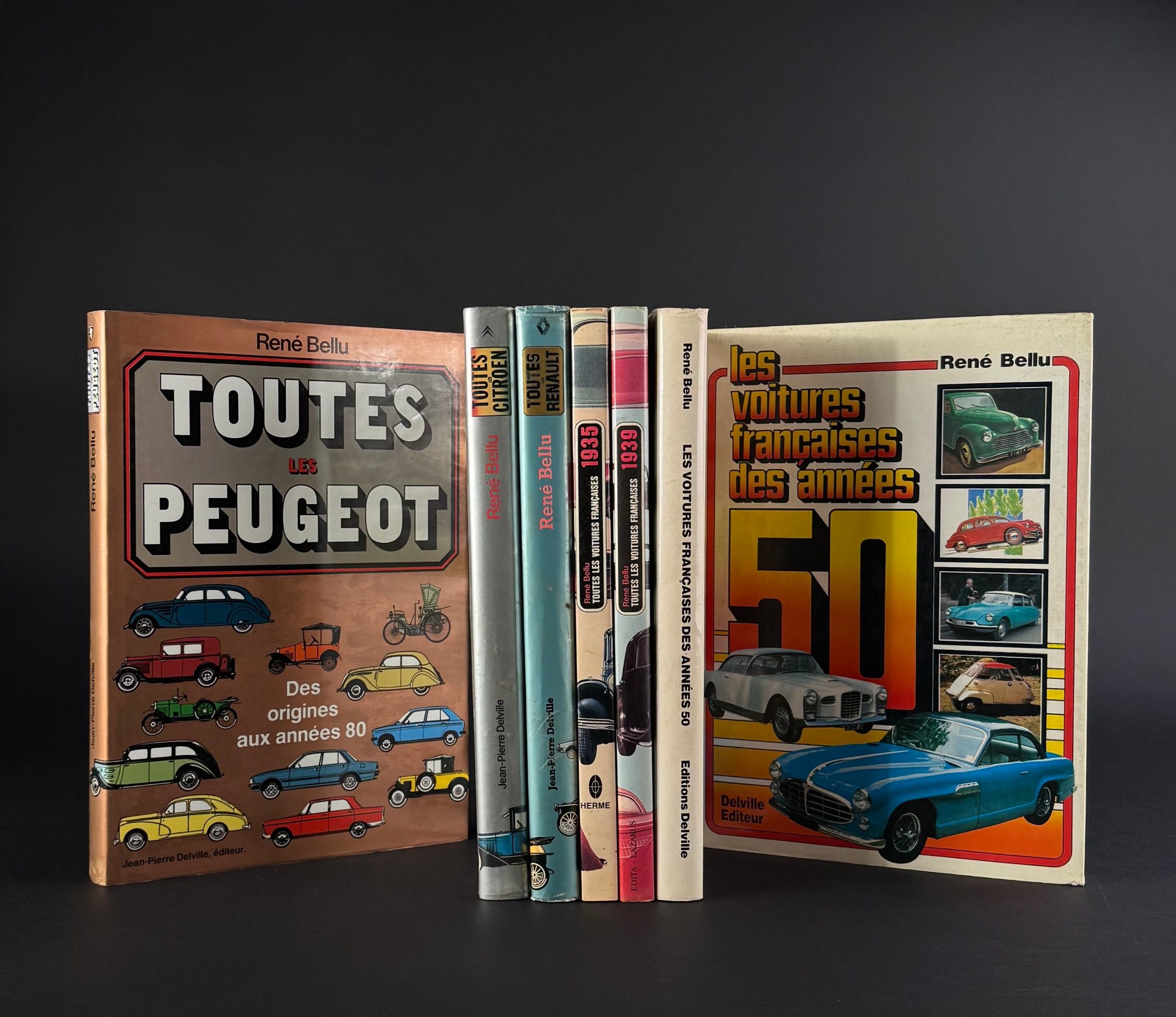 AUTOMOBILE - FRENCH CONSTRUCTORS (set of 7 volumes) - BELLU (René) Les voitures françaises des années 50. Delville Edit, 1983 (2 copies) - BELLU (René) All the 1935 French cars and their rivals. Hermé-Vilo, 1984 - BELLU (René) All 1939 French cars and their rivals. Edita-Vilo, 1982 - BELLU (René) All the Peugeots from the origins to the 1980s. J.-P. Delville Edit, 1980 - BELLU (René) All Citroën from the origins to the 1980s. J.-P. Delville Edit. n.d. - BELLU (René) All the Renault cars from their origins to the present day. J.-P. Delville Edit. 1979 (for the set, traces of damp)