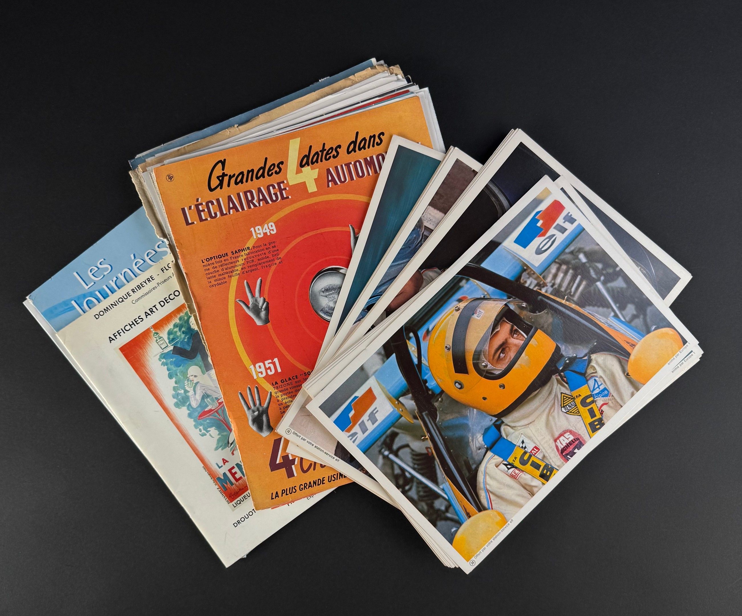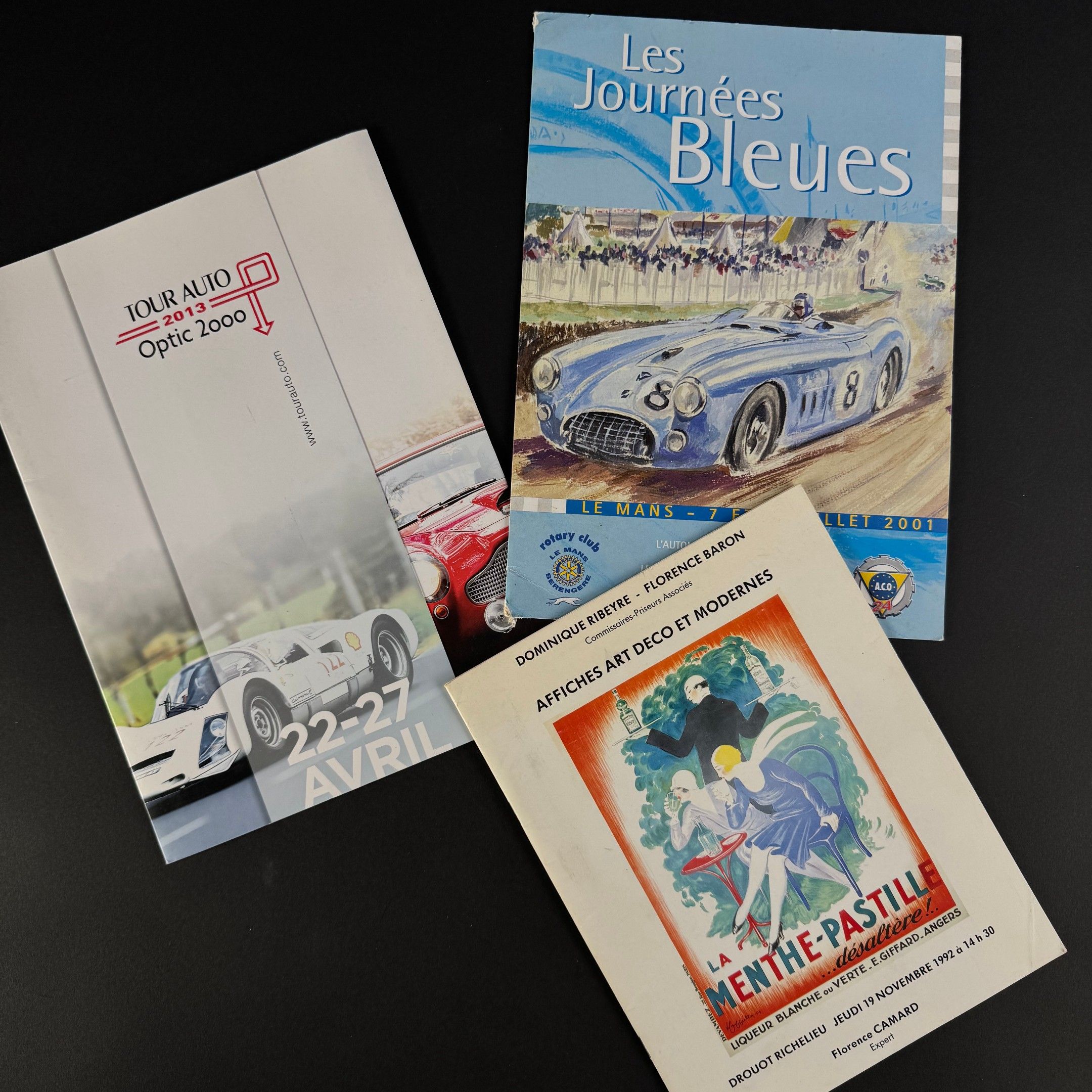 Attached is an auction catalogue of Art Deco and Modern Posters, Ribeyre-Baron, Drouot Richelieu 19 November 1992, and a registration form for the Tour Auto 2013 Optic 2000.