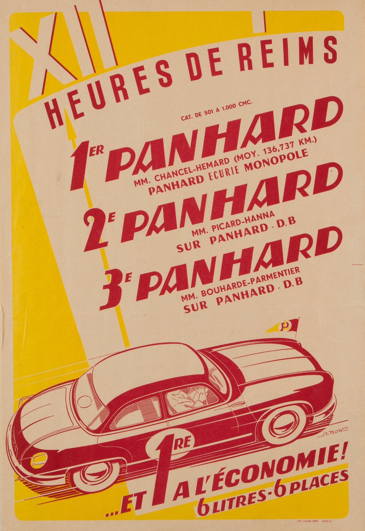 - XII Heures de Reims 1er Panhard 2e Panhard 3e Panhard... et 1ère à l'économie ! 6 litres - 6 seats". Imp. Lazare-Ferry Paris. Original poster printed in two colours.
