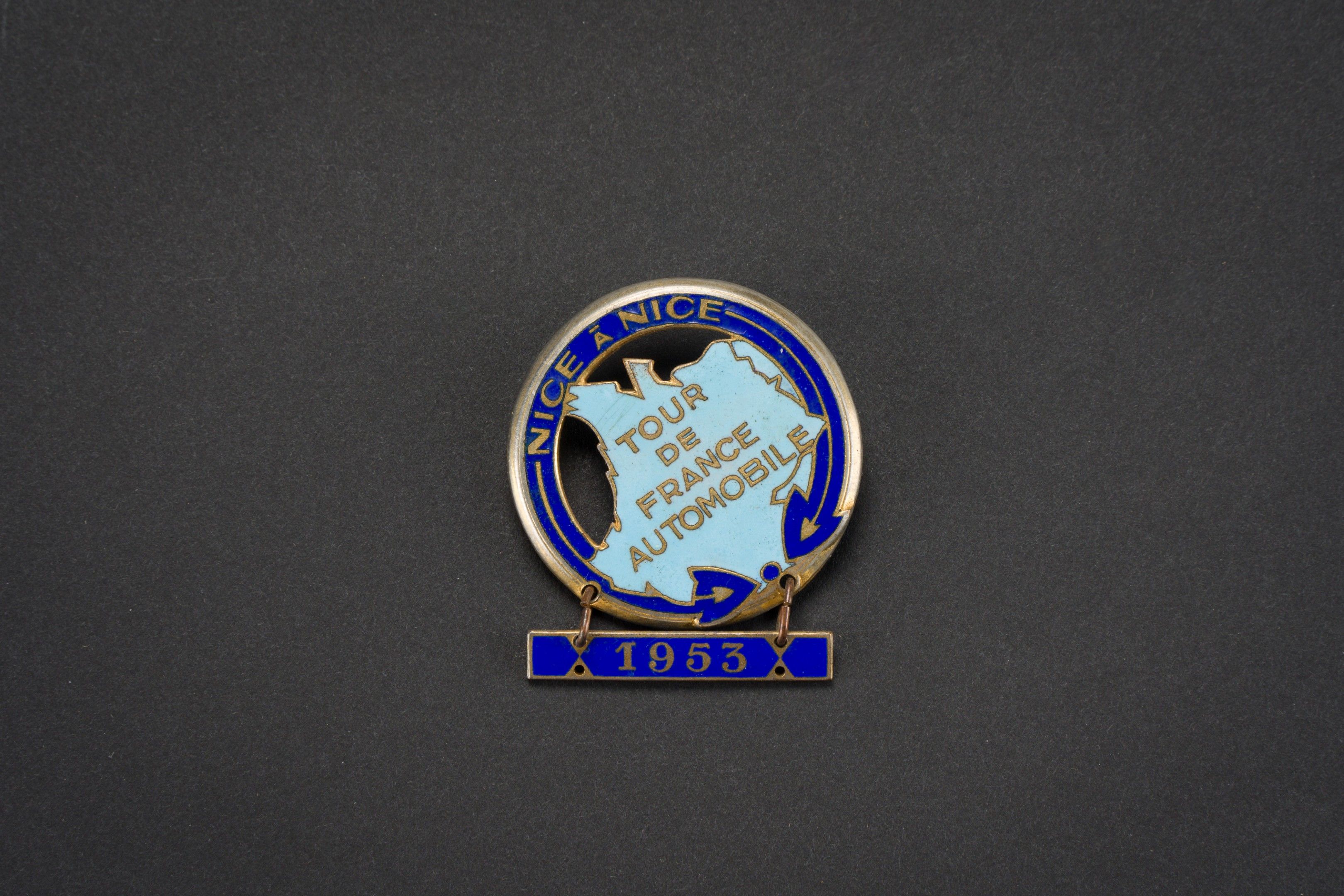 Enamelled metal badge from the Tour de France Automobile Nice à Nice, 1953, made by Drago Paris.