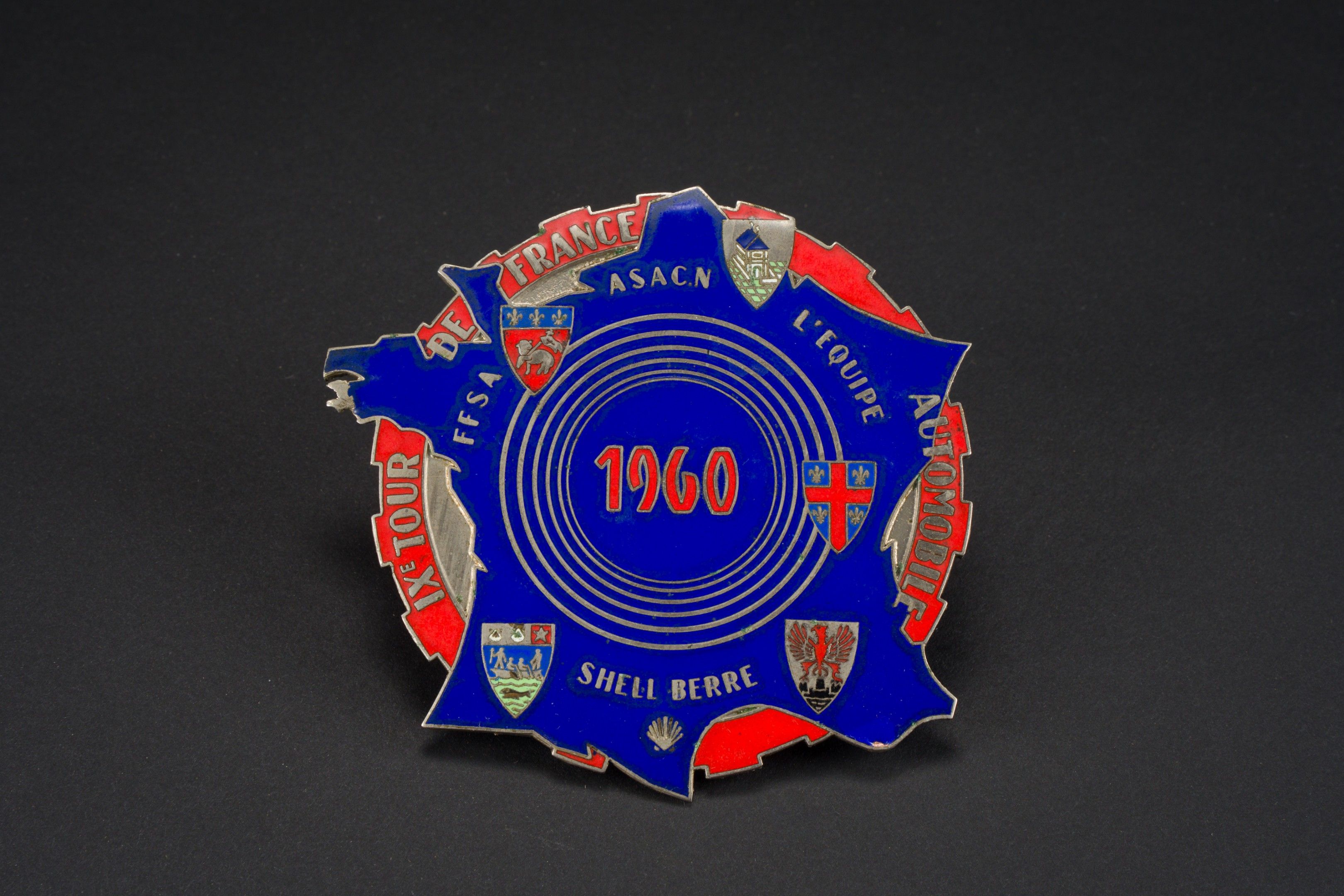Enamelled metal grille plate "IXe Tour de France Automobile, 1960", made by Fraisse-Demey Paris.
