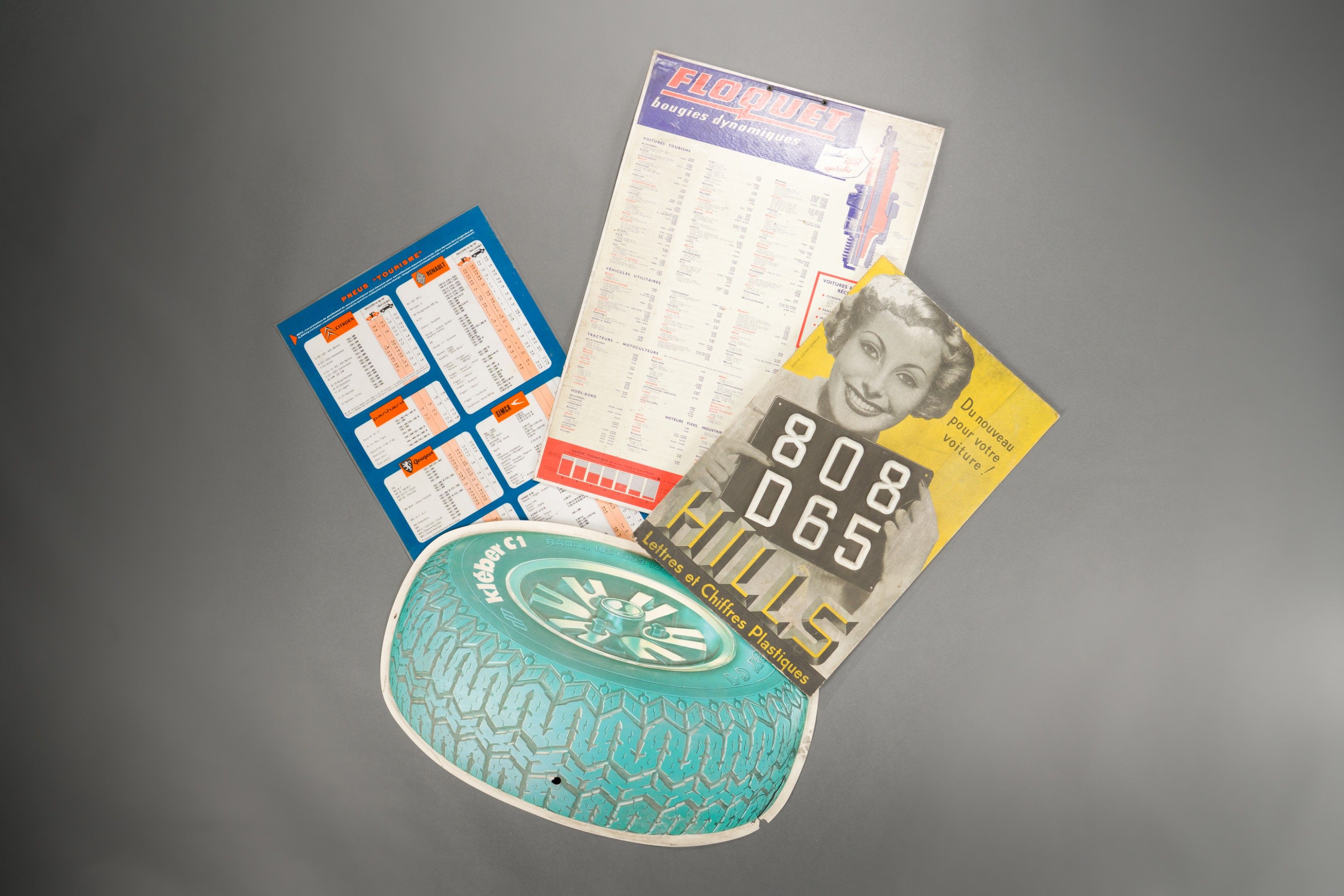 An anonymous pvc tyre inflation chart and a FLOQUET spark plug reference chart are attached, printed cardboard.
