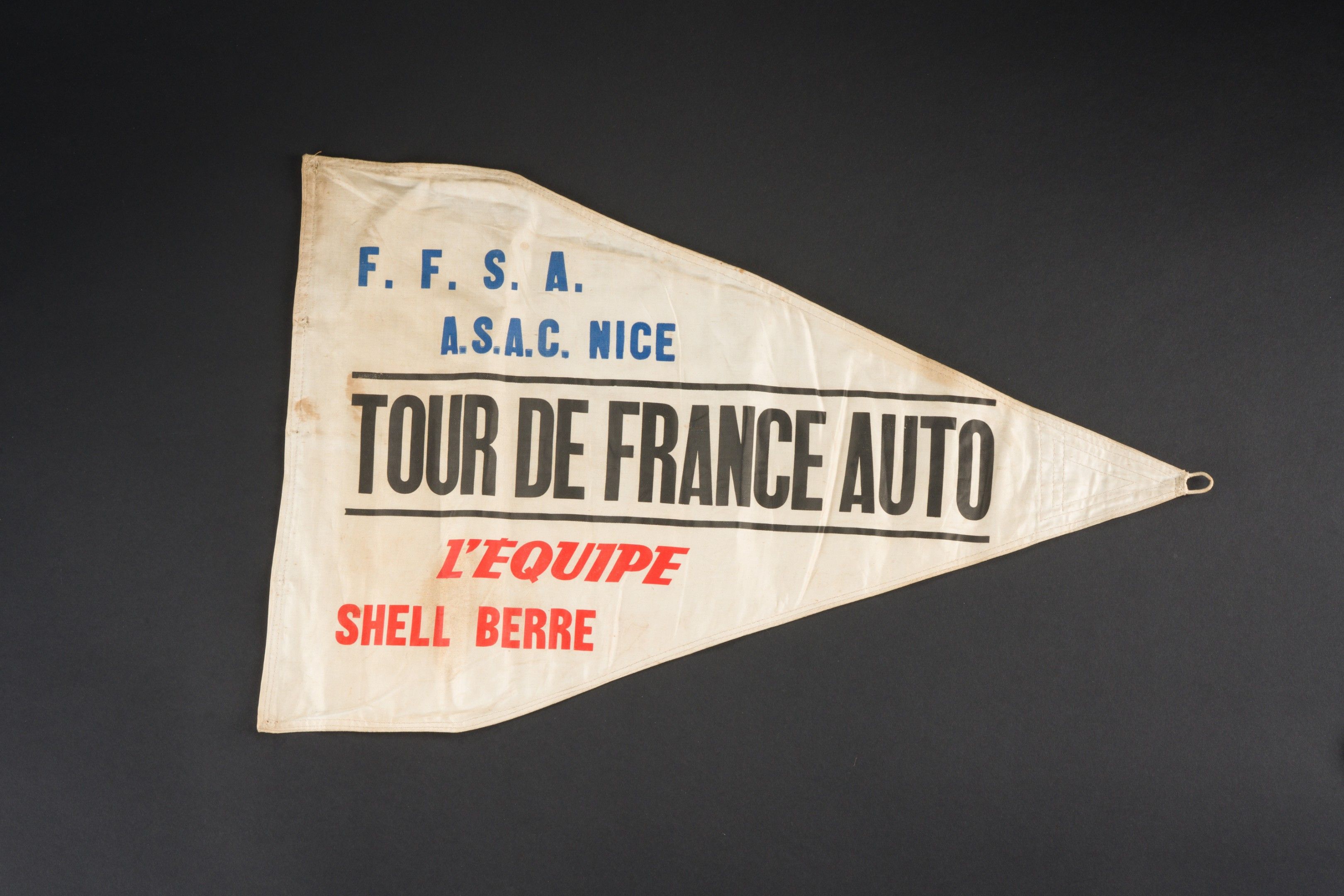 Cotton pennant printed on both sides "F.F.S.A. A.S.A.C. NICE TOUR DE France AUTO L'Equipe Shell Berre".