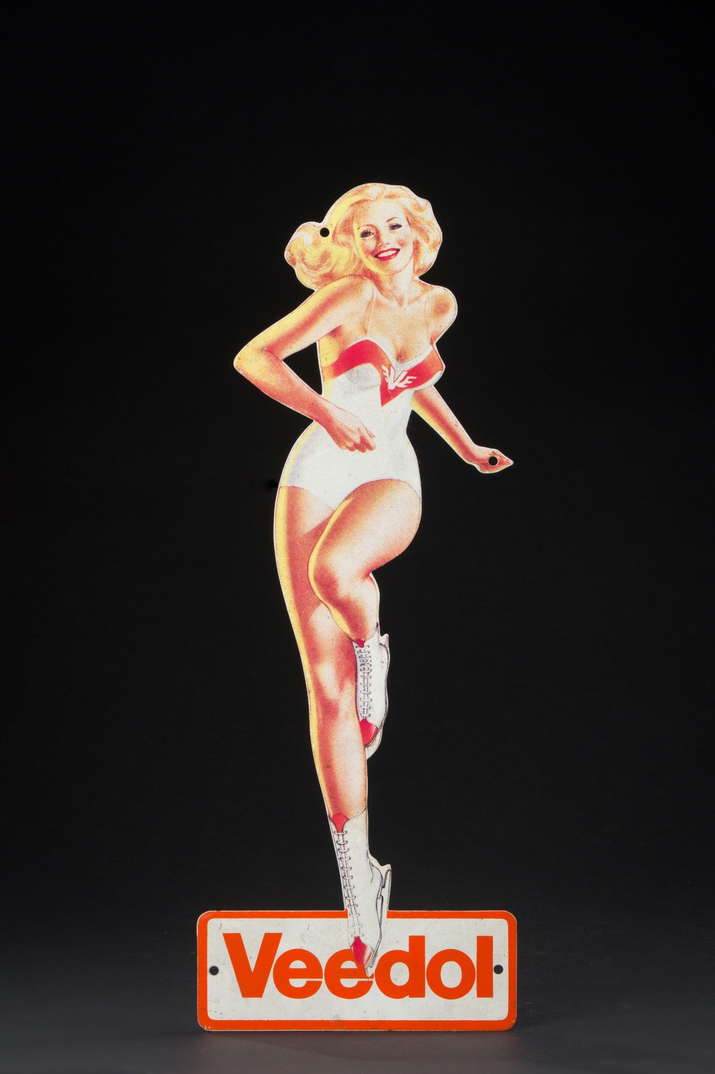 VEEDOL Pin-up silhouette in screen-printed sheet metal.