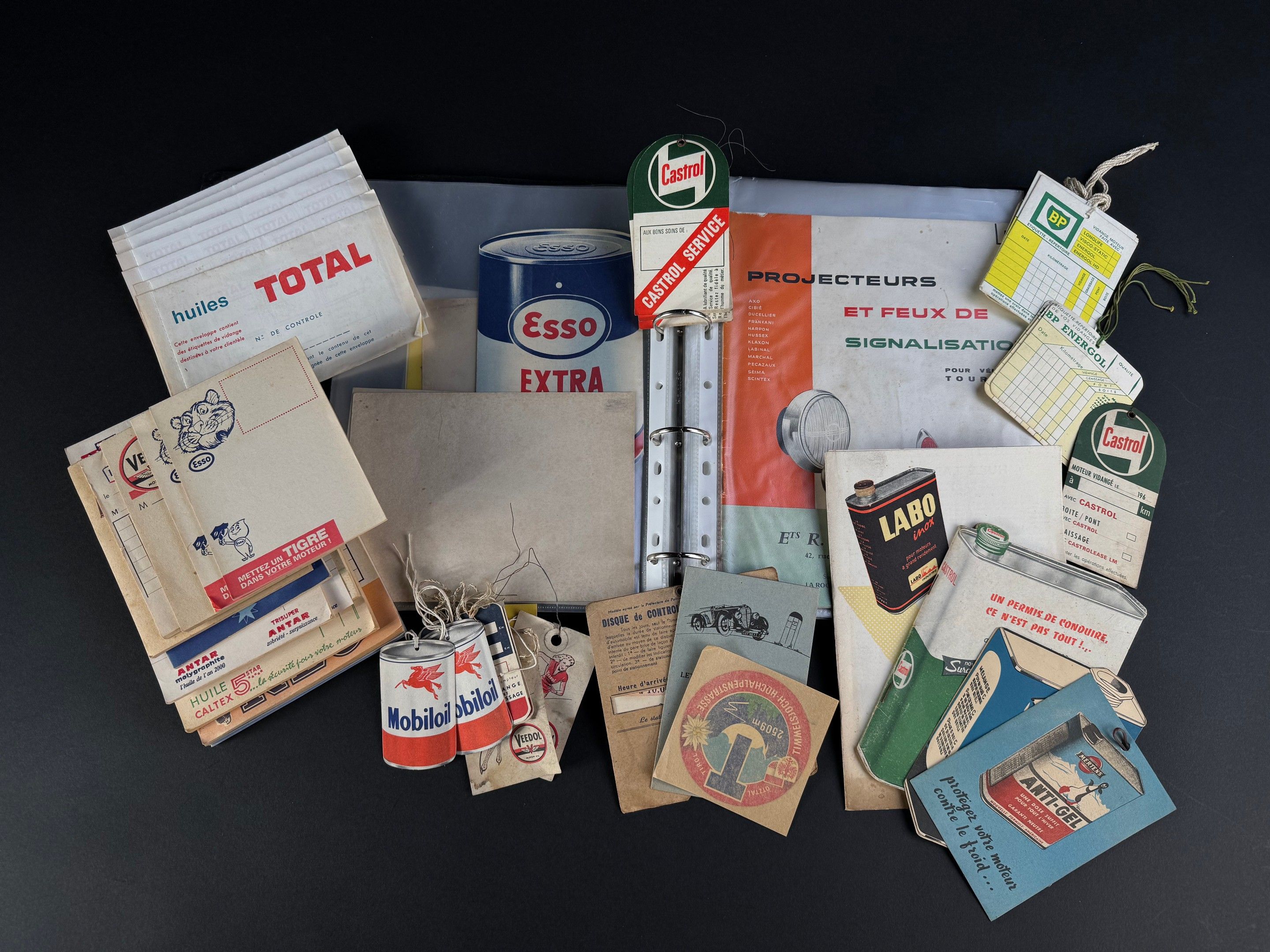 mainly ANTAR, BP, CALTEX, CASTROL, ESSO, HEUDEBERT, KLG, LABO, MOBIL, TOTAL, VEEDOL brands