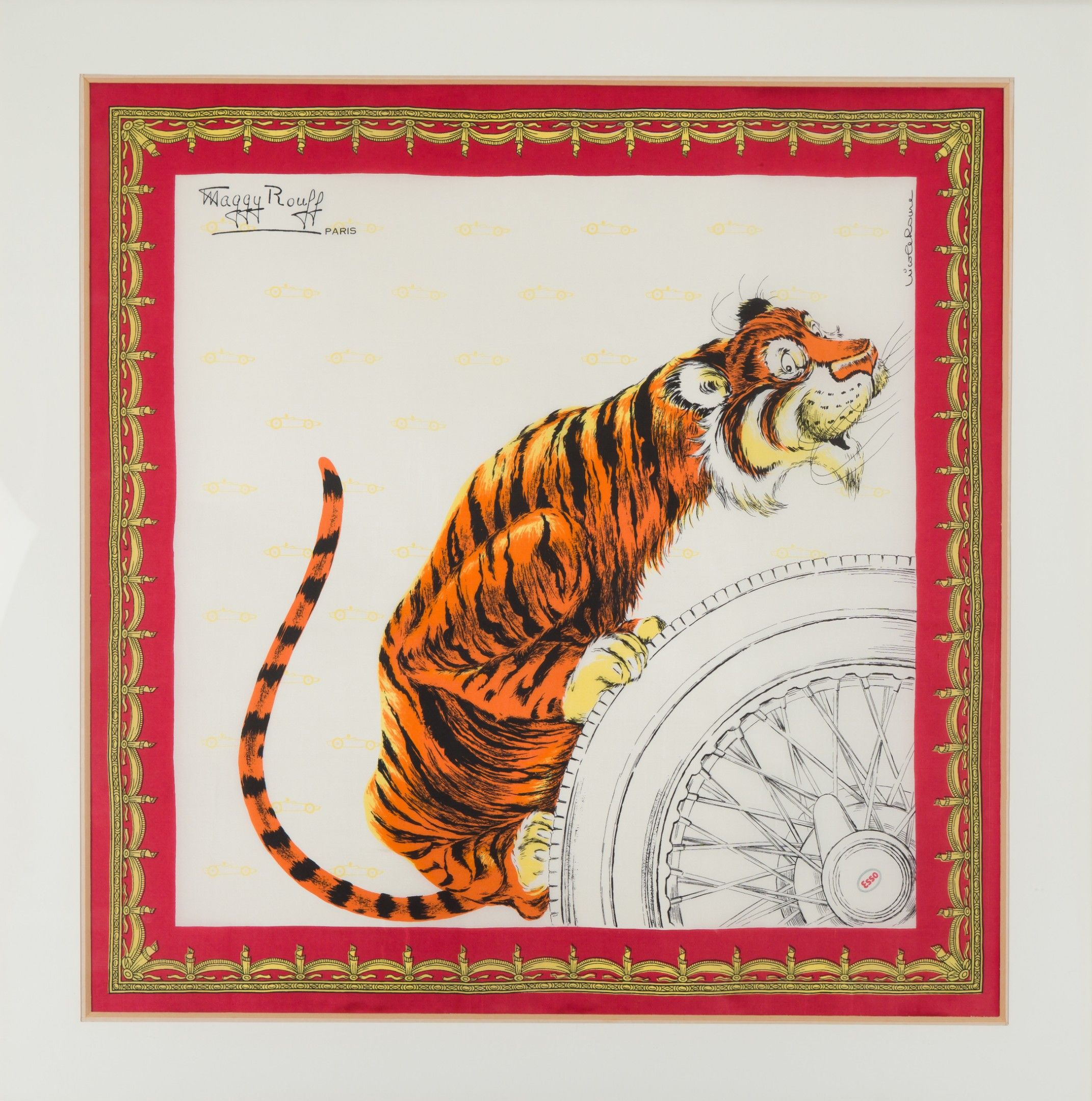Silk square printed in full colour with the Esso tiger on a wheel, scalloped edge. Edit. Nicole Roure.