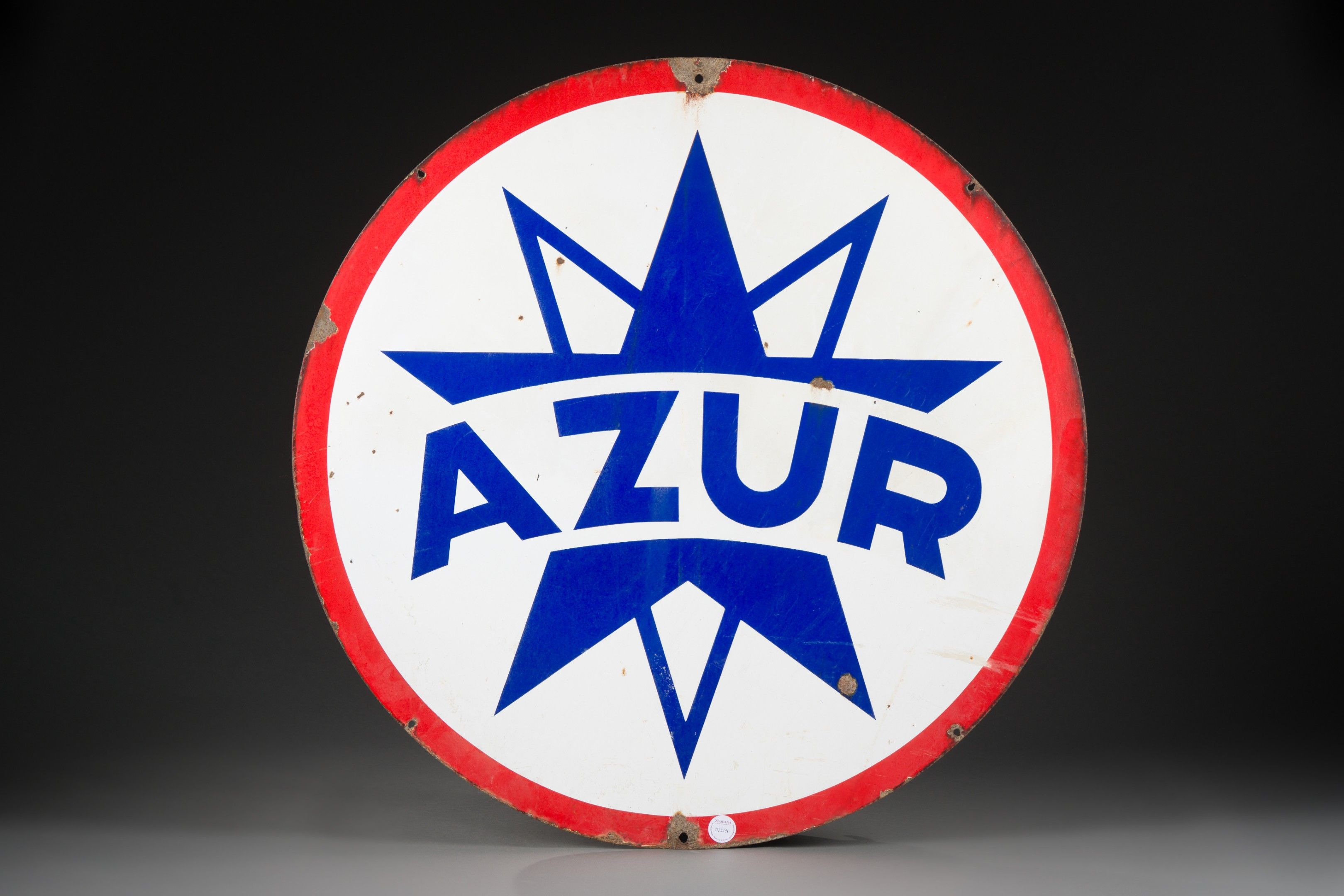 Double-sided circular plate in enamelled sheet metal "AZUR", Art France Luynes Touraine ed.
