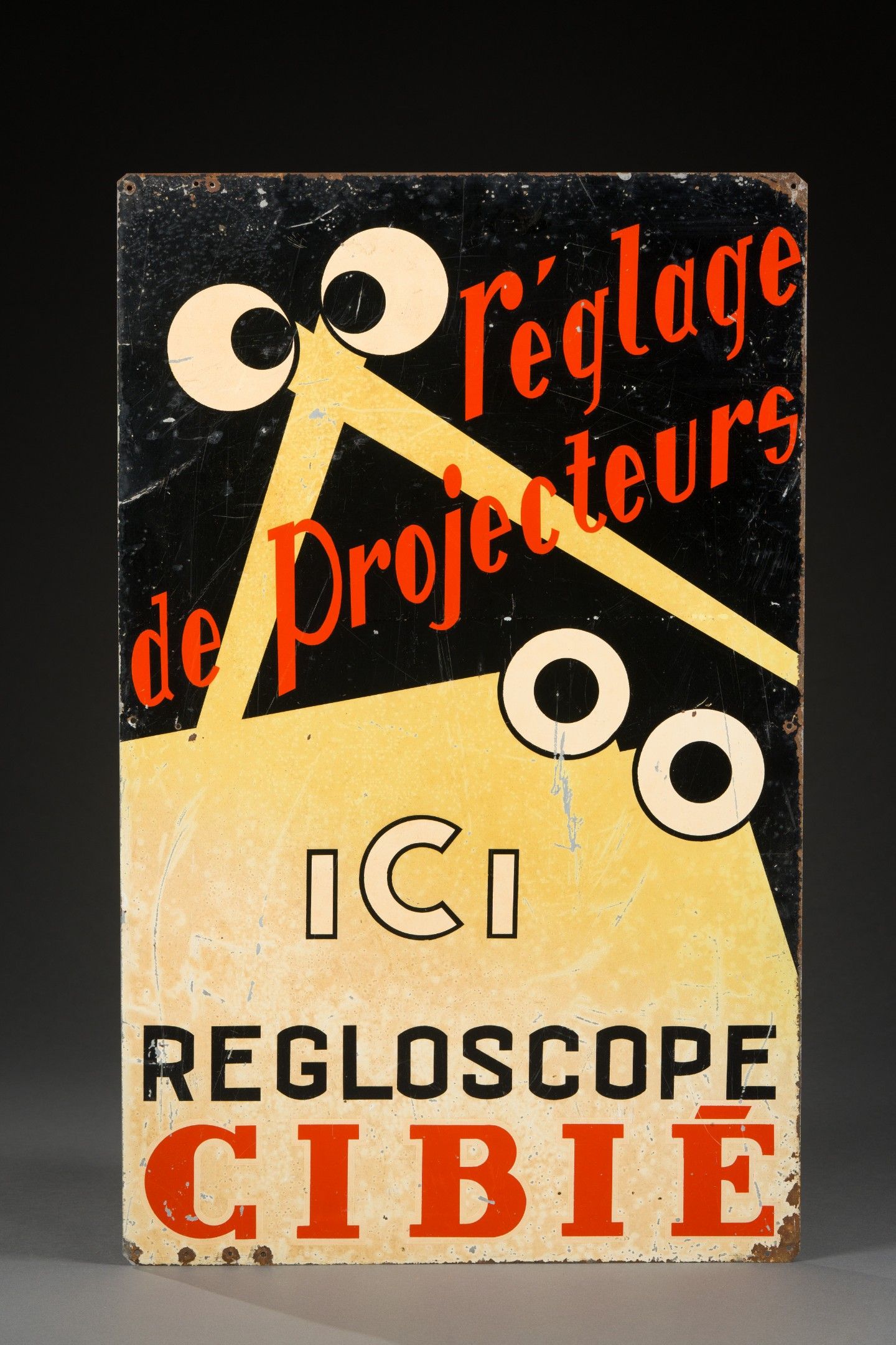 Rectangular plate in painted sheet metal " headlamp adjustment here REGLOSCOPE CIBIE ".