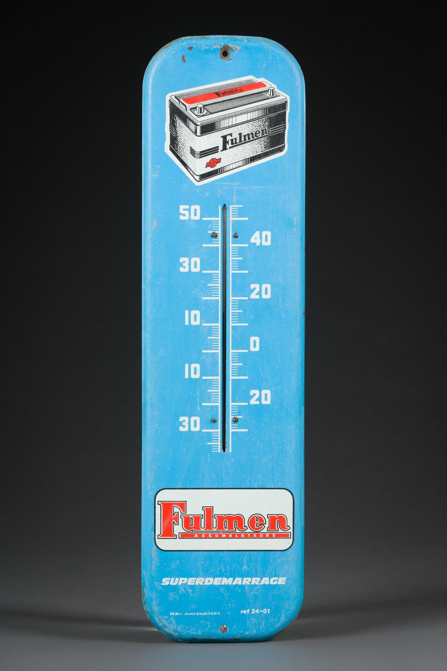 Plate thermometer, rectangular chamfered shape, in enamelled sheet metal "FULMEN SUPERDEMARRAGE", ed. Dem 24-01.