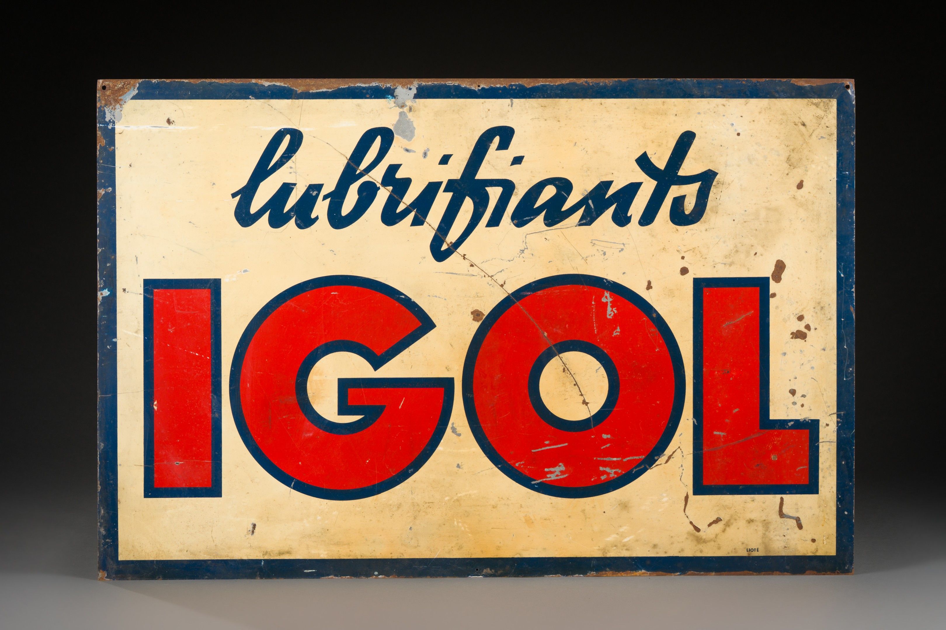 Rectangular enamelled sheet metal plate "Lubrifiants IGOL", ed. Lioté.