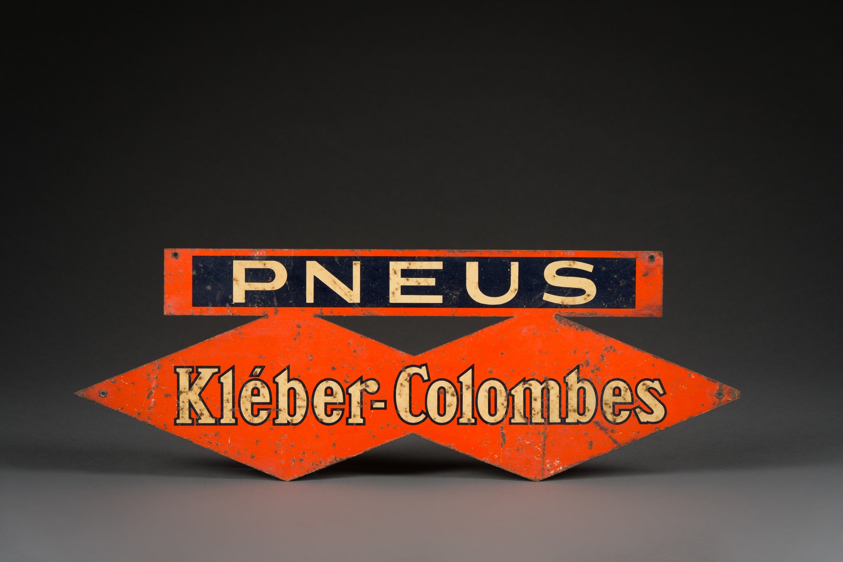 Free-form plaque in painted sheet metal "PNEUS Kléber-Colombes".