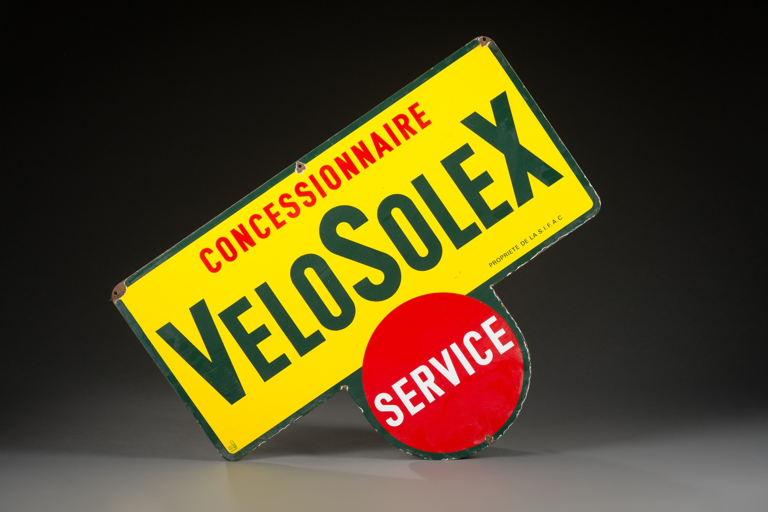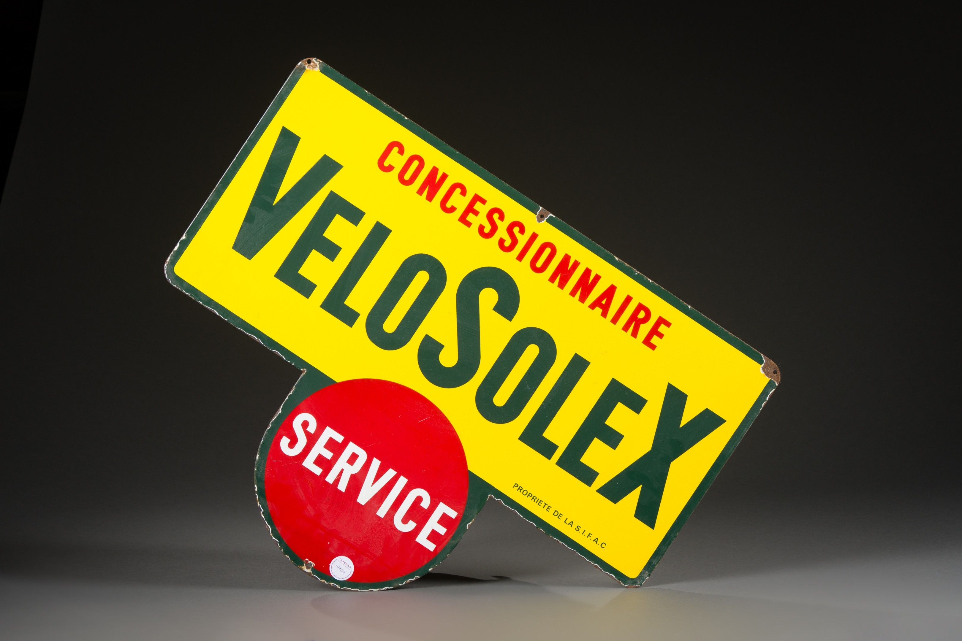 Double-sided enamelled plate "CONCESSIONNAIRE VELOSOLEX SERVICE", Boos & Hahn ed.
