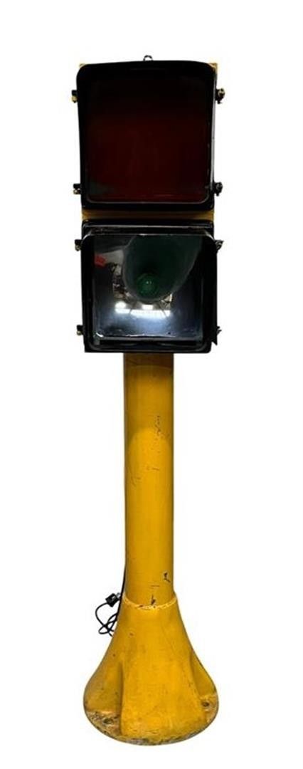 Large vintage traffic light from the Eagle Signal brand (green glass shade missing). H. 180 cm.
