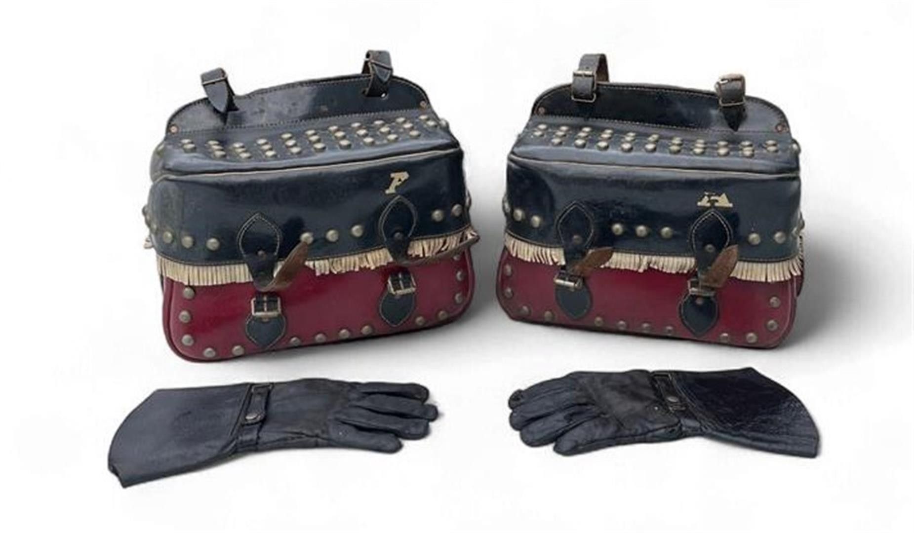Set of 'Buco' leather motorcycle bags. H. 110 cm.