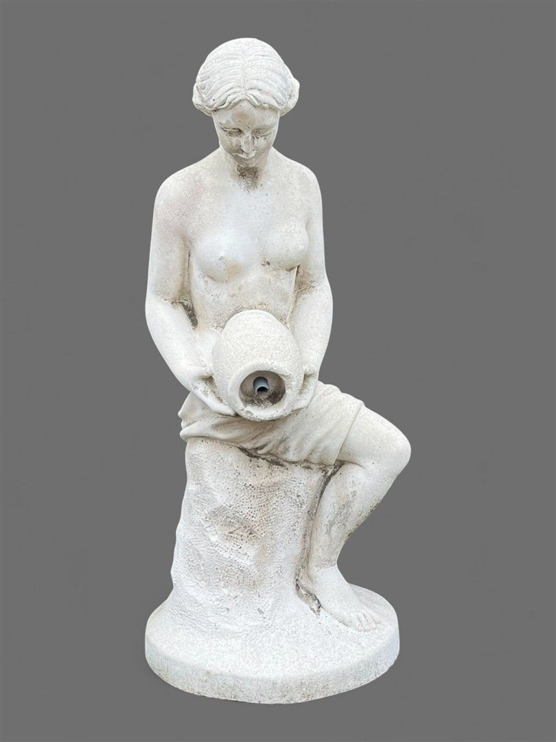 A pond sprinkler / garden statue of a water nymph. 93 x 40 x 43 cm.