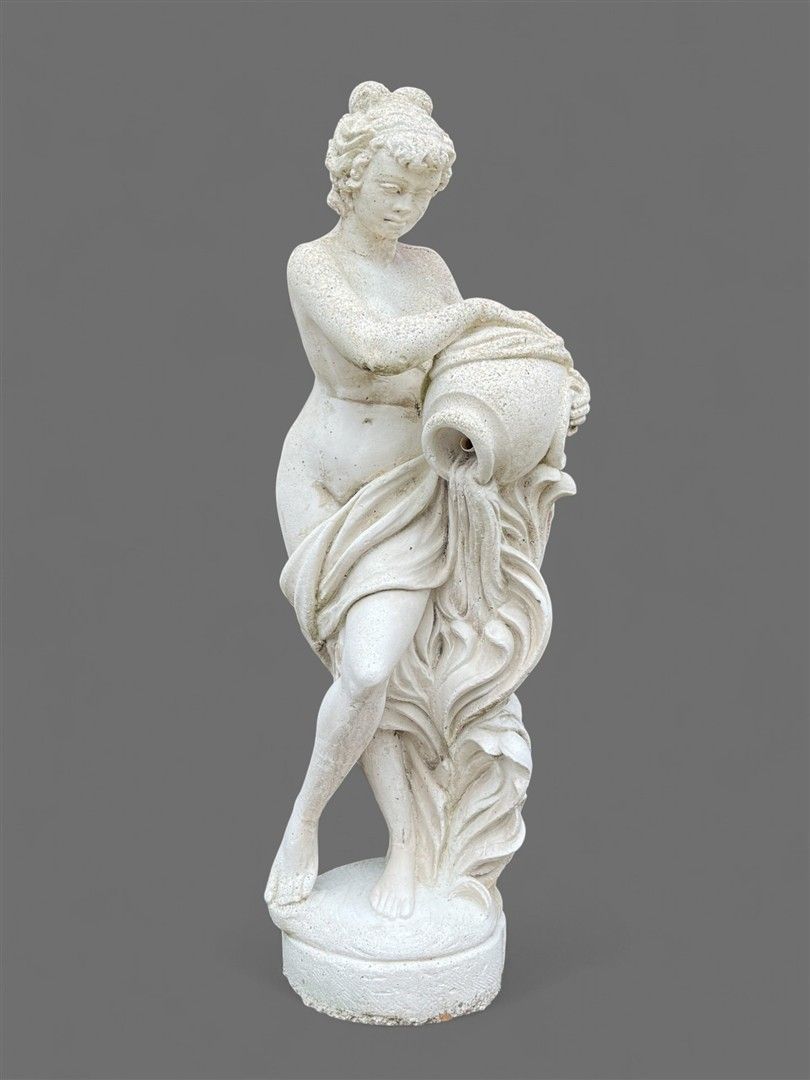 A pond sprinkler / garden statue of a water nymph with a jug…