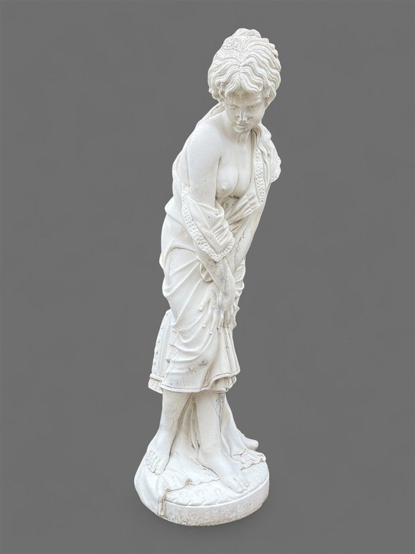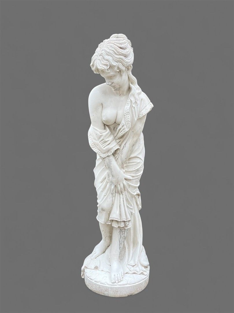 A garden statue of a bathing girl. 133 x 40 x 60 cm.