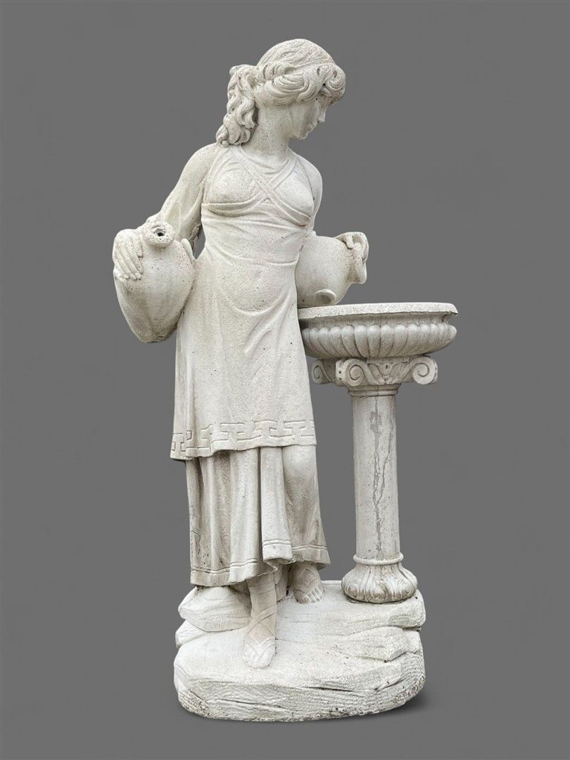A freestanding pond statue/garden statue of a classic beauty at a water source. 102 x 41 x 33 cm.