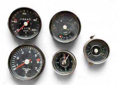 Lot of various speedometers, Porsche 911, 1960s and 1970s.