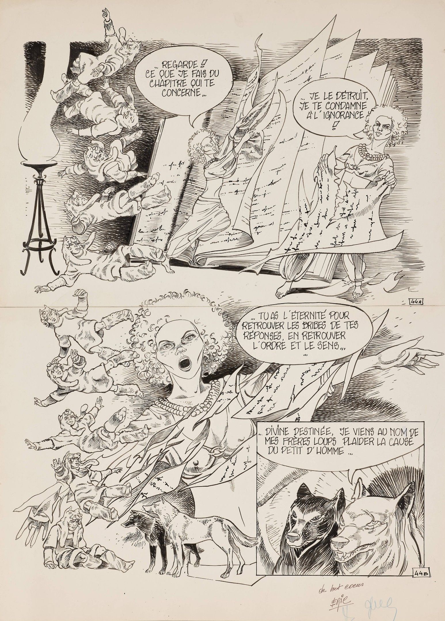 India ink on paper for plate 44 of this album published in 1976 by Editions du Lombard.