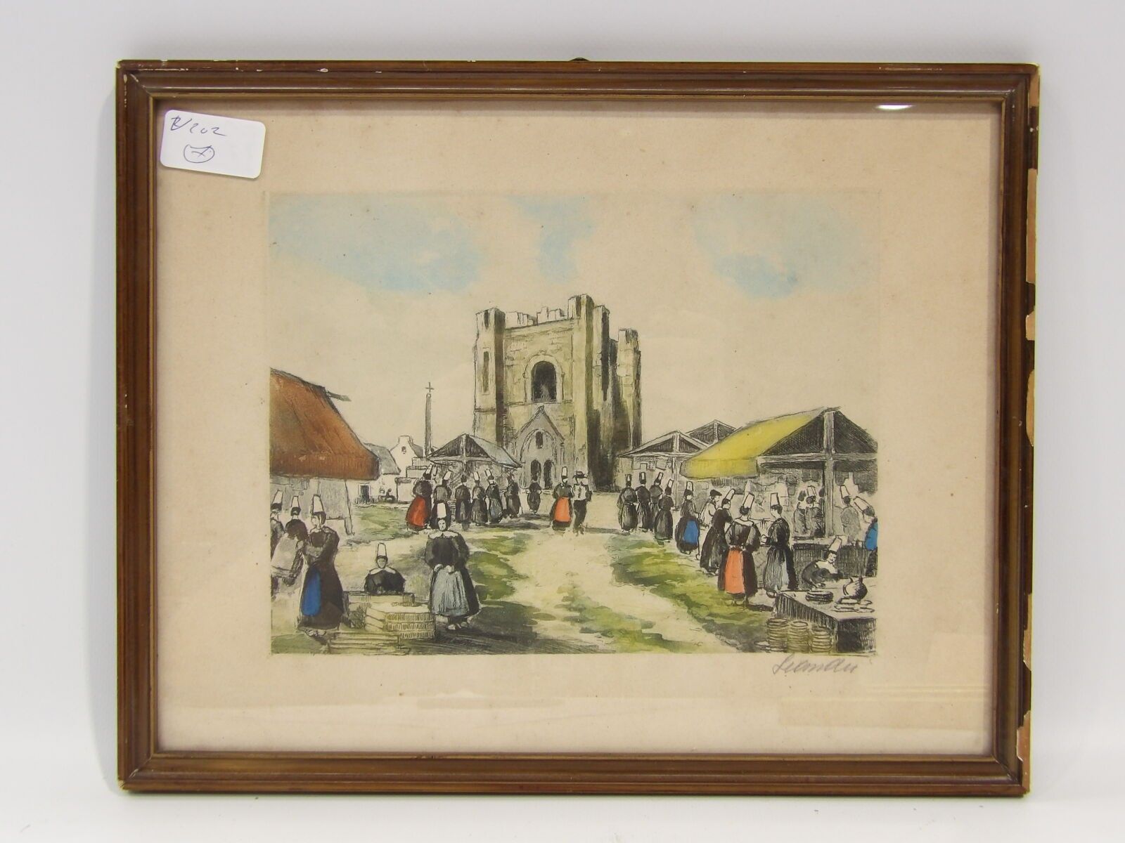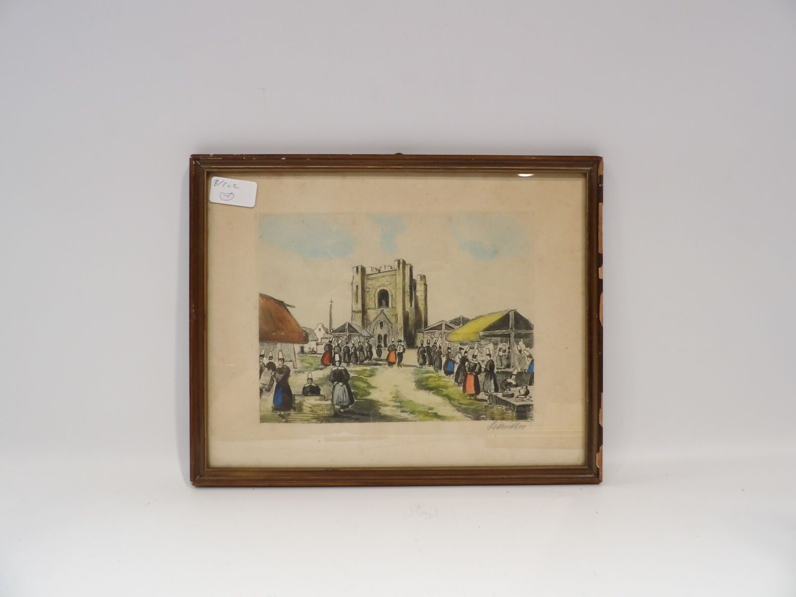 20th century school, watercolour and pencil "women at the Breton market", under glass in a moulded varnished frame 27.5x34cm, used condition