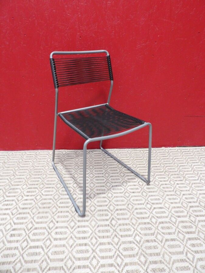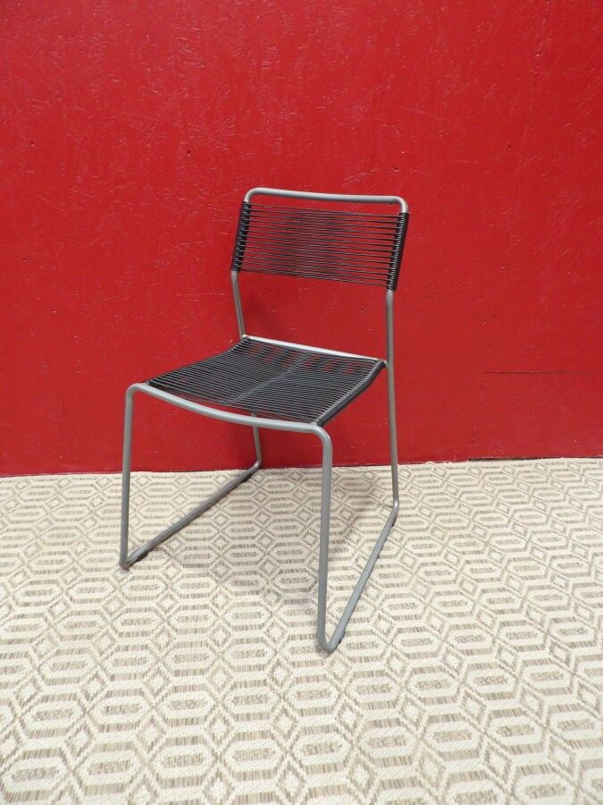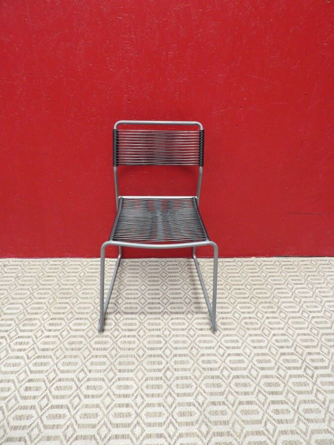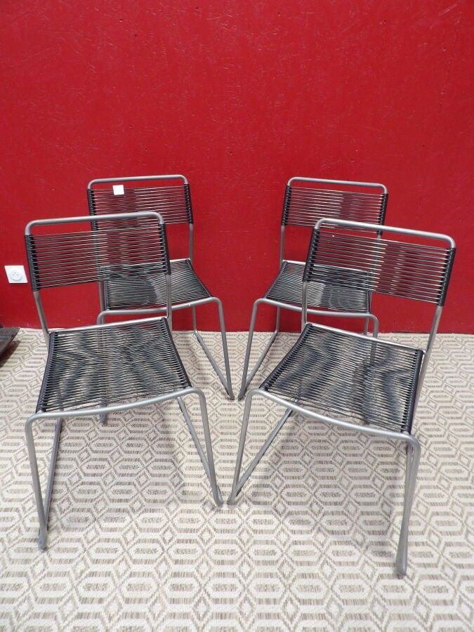 Set of 4 chromed tubular metal and resin scoubidou chairs, c…