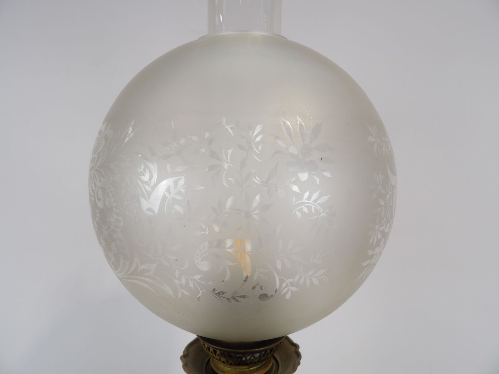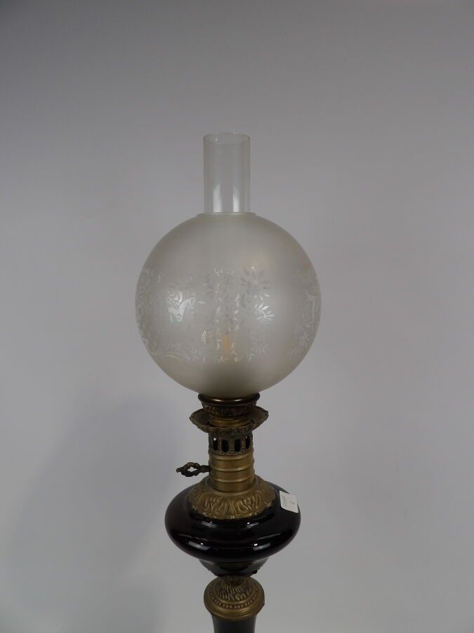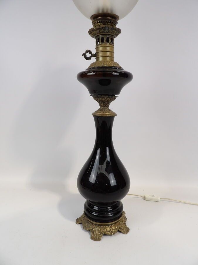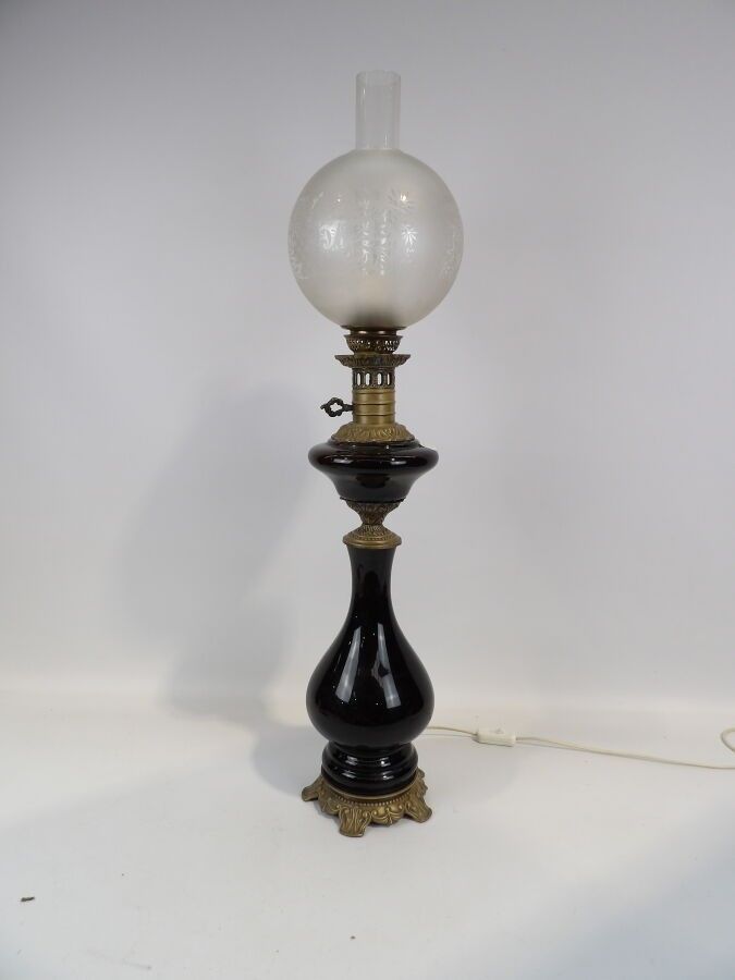 Black porcelain and brass oil lamp in the Nap. III STYLE. Dim: Ht. tot. 88cm