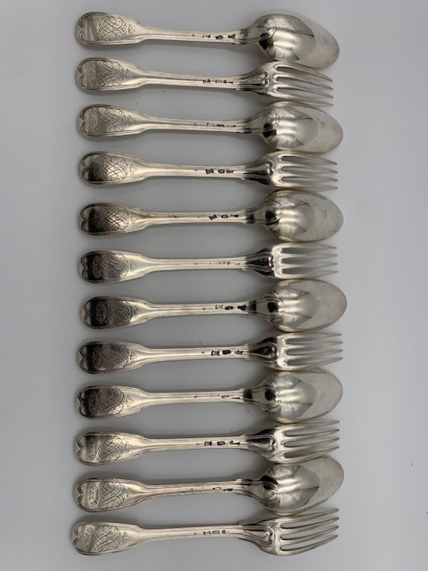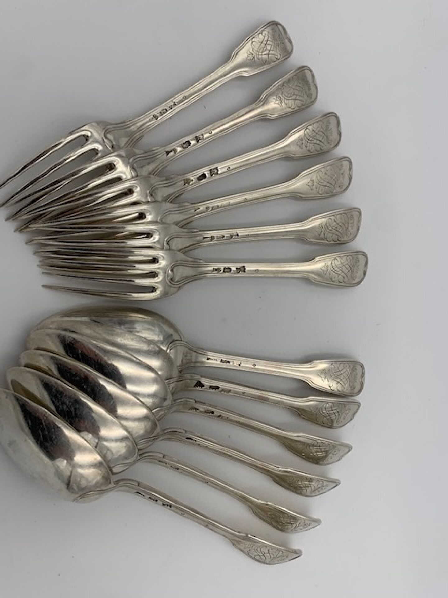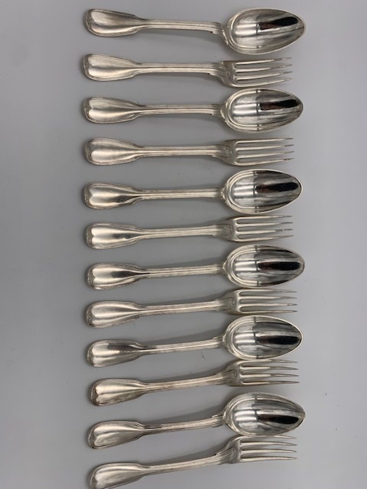 A perfect suite of six (6) silver flatware, filets pattern, …