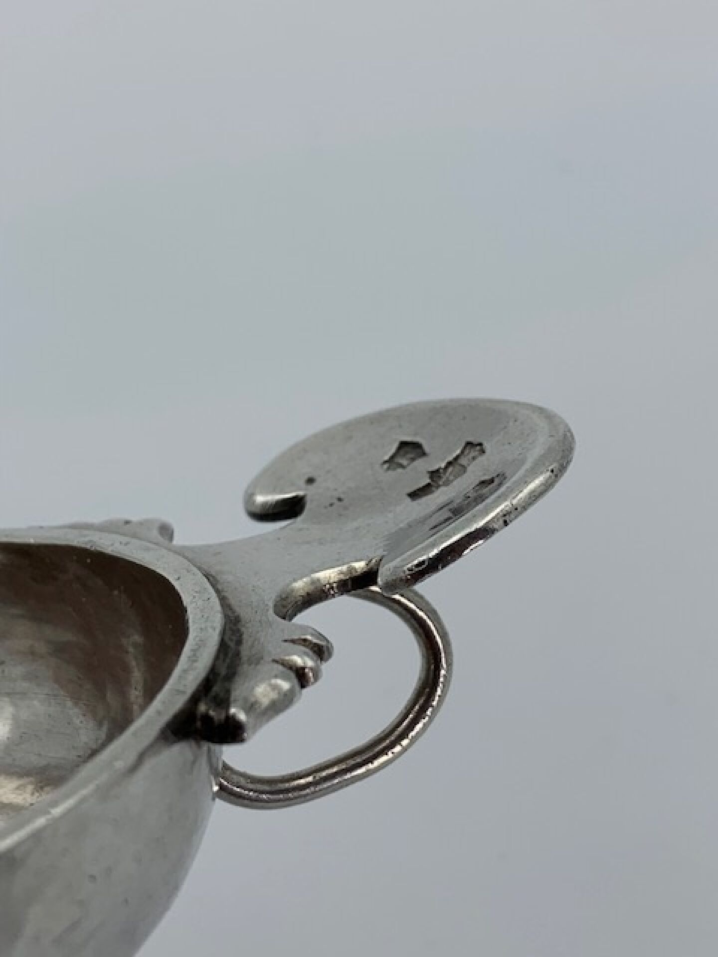 Plain silver wine stein, cut-out thumb rest model.
