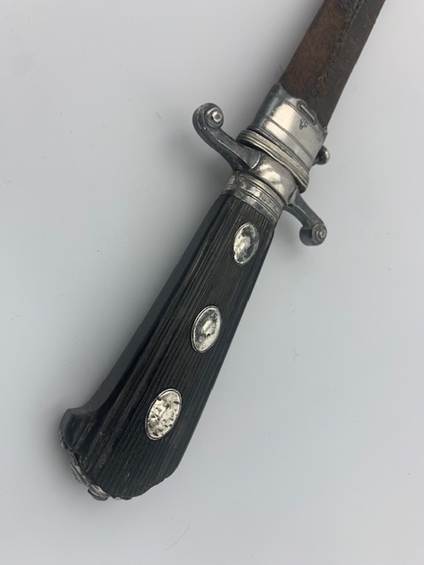 Premium 18th century hunting or venery dagger, ebony spindle with si…
