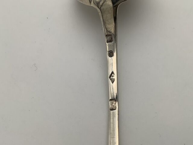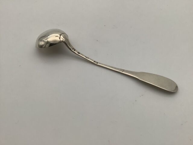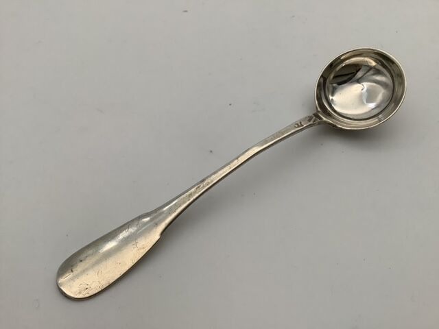 Silver mustard spoon in the shape of a small ladle, single-f…