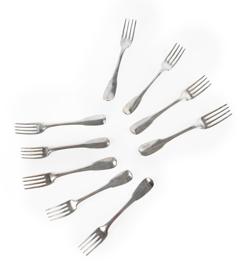 9 silver FOURCHETTES, fine old regime Fermiers Généraux hallmarks. Weight : 678 g