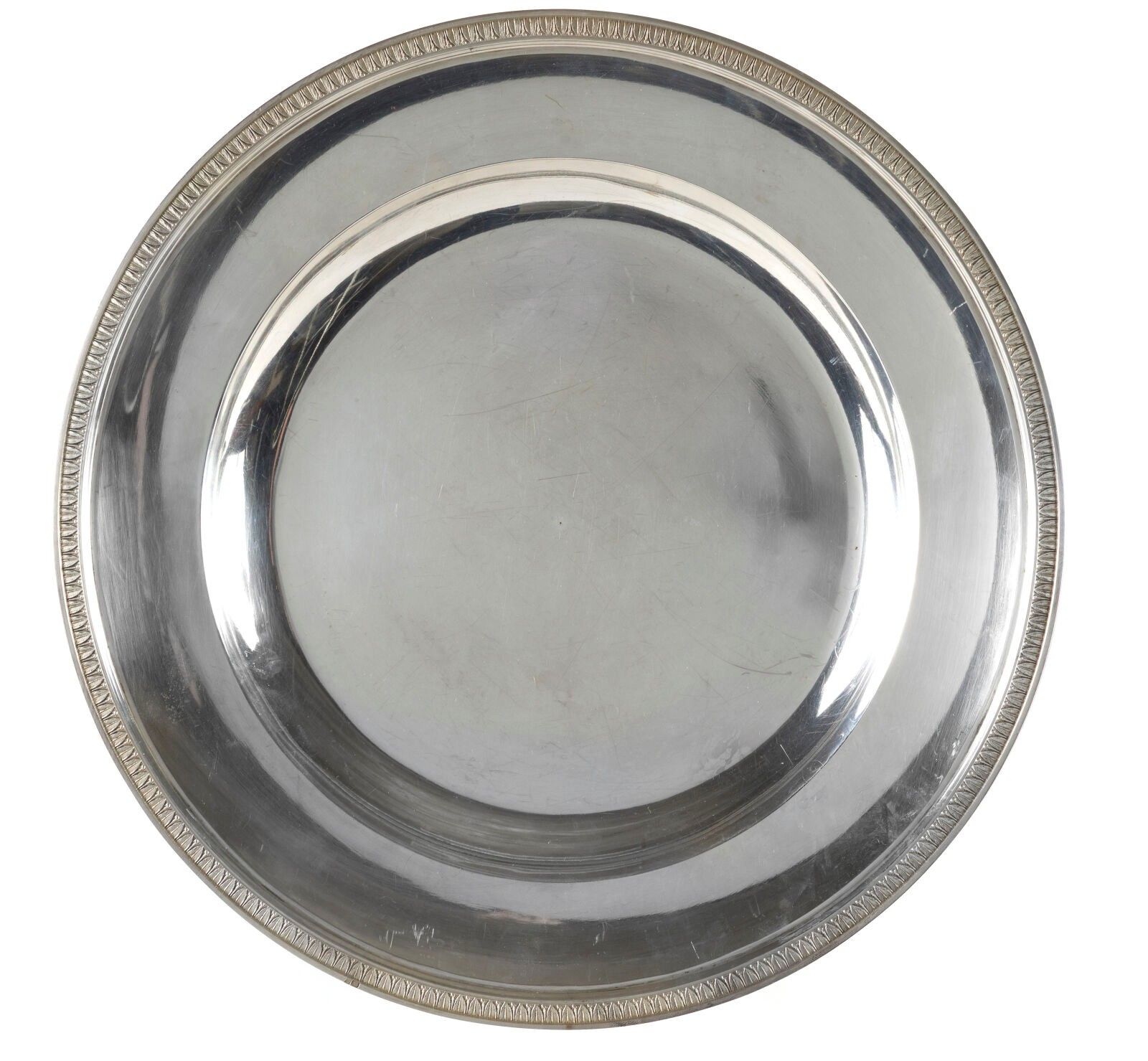 A round silver PLAT (Minerve) with a border decorated with water leaves. Diam. 33 cm