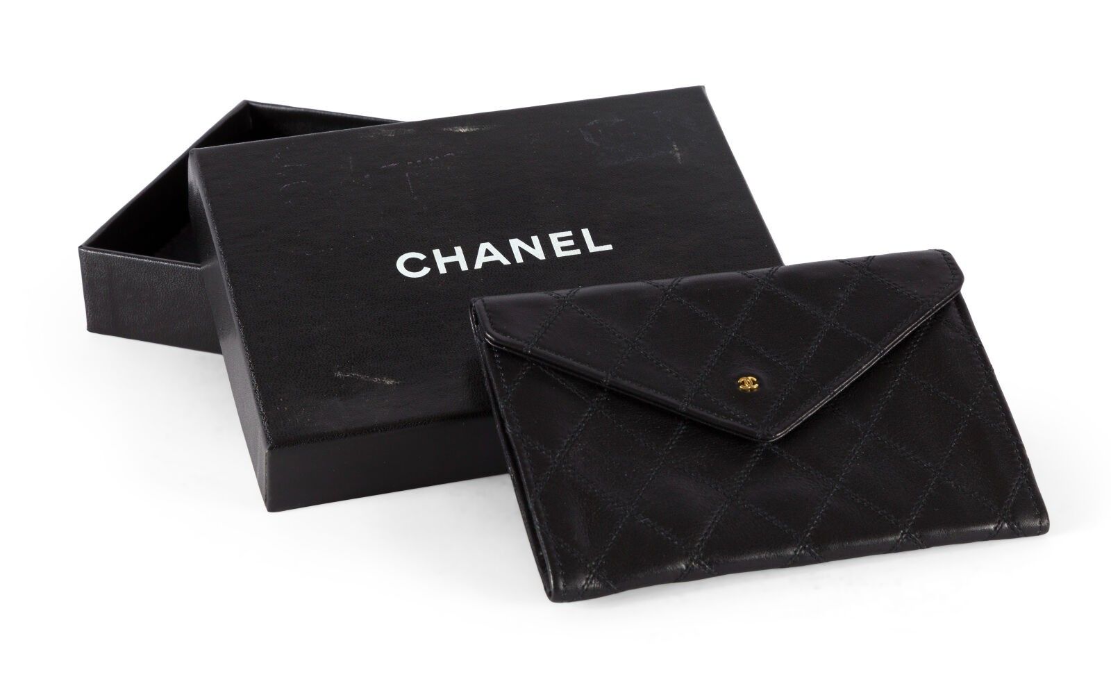 CHANEL - BLACK quilted calfskin wallet / cardholder, flap an…