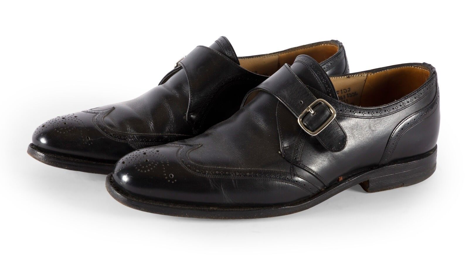 CHURCH'S Custom Grade - Pair of black leather Picadilly single buckle shoes. Estimated size 42 (wear)