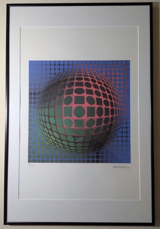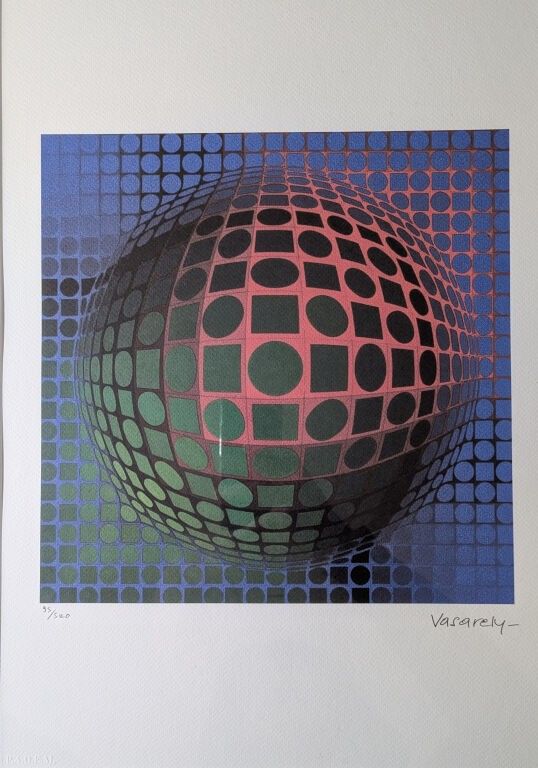 Victor Vasarely, (1906 - 1997) d'après , Abstract composition, untitled, Offset lithograph on Arches Infinity paper, Numbered 95 / 500, signature printed in the plate, Dimensions : 50 x 35 cm + frame 60x40cm, dry stamp from the Société de la propriété artistique des dessins et modèles (SPADEM), edition certificate included in the frame. This Franco-Hungarian artist is recognised as the father of optical art.