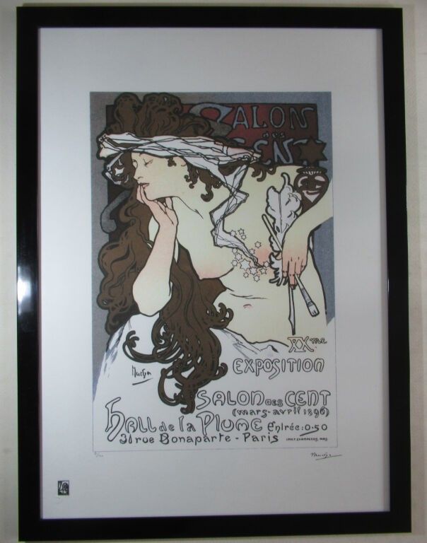 Alphonse Mucha (1860-1939) after , Le Salon des Cent, offset lithograph, numbered, signature printed in the plate, size : 70 x 50 cm + frame . The Salon des Cent was an exhibition of French art, prints and drawings, in association with a literary and artistic periodical.