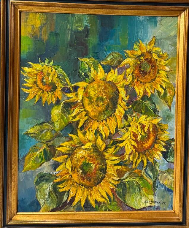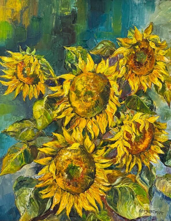 Betty WITTWE (XX-XXI). Sunflowers. HSToile. Signed. 92 x 73 cm.