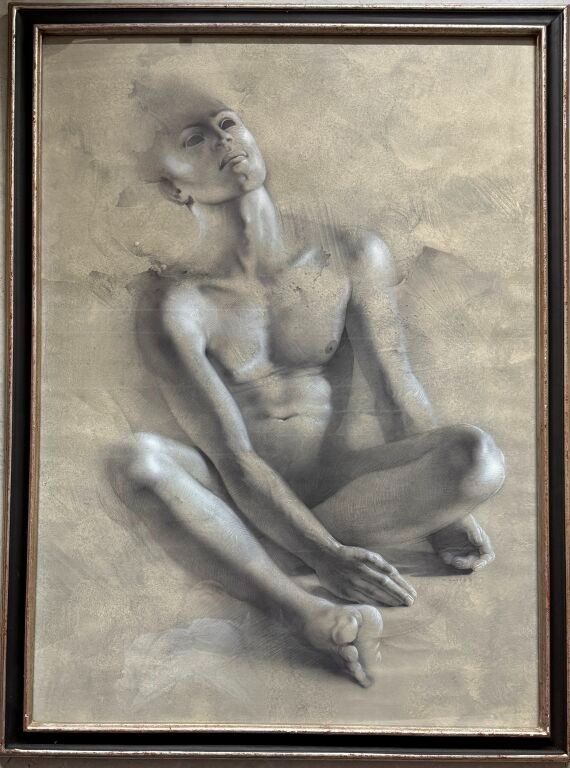Wash, chalk enhancement, black pencil/paper. Signed. 105 x 73 cm.
