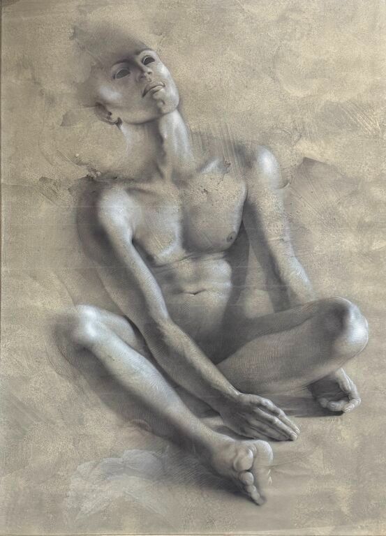Gérard di Maccio born 1938. Crouching man. Mixed media