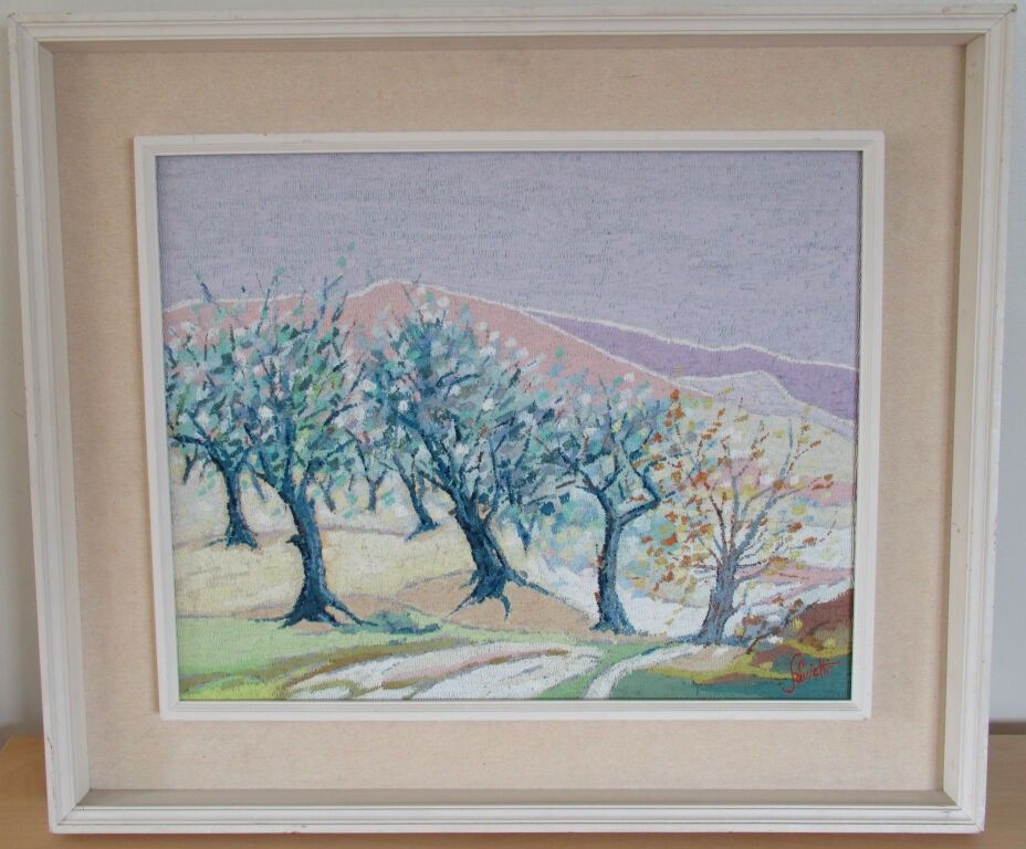 Antonio SALVIETTI (XX) , The olive grove, oil on panel signed, period: 50's - 60's, size: 40x50 cm + frame: 58x67,5cm. On the back: Vedano Olona gallery label. Italy