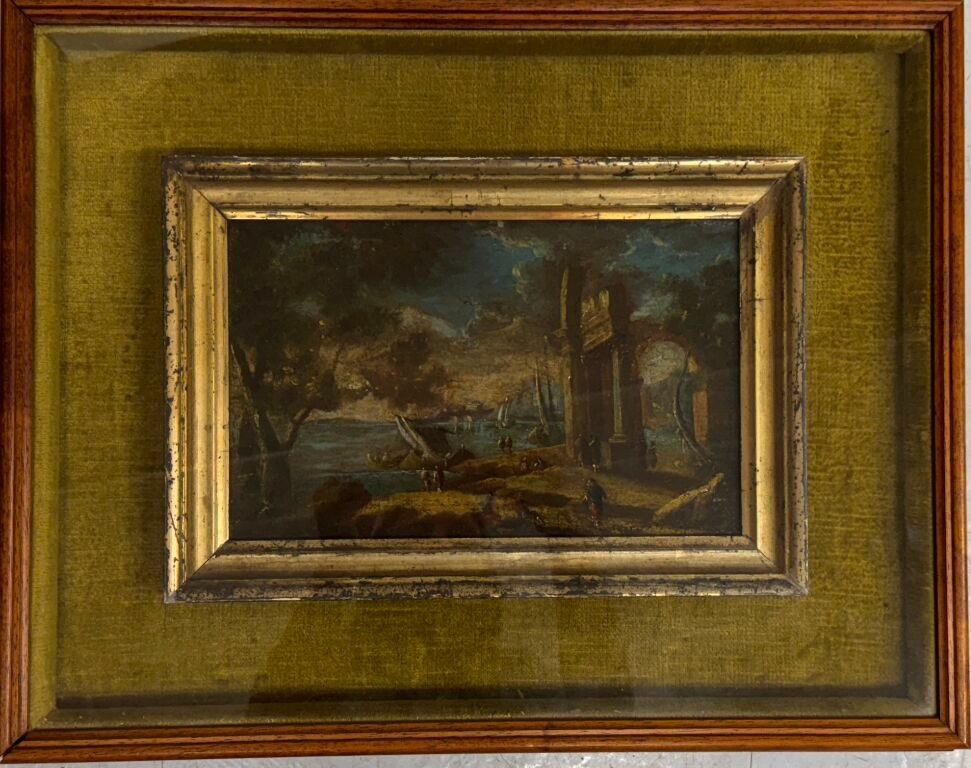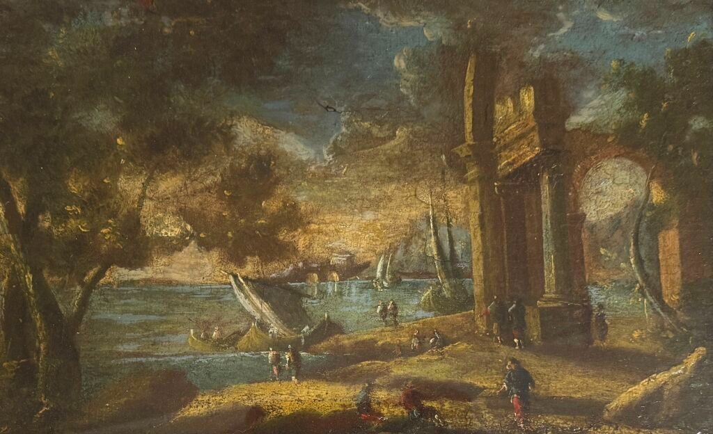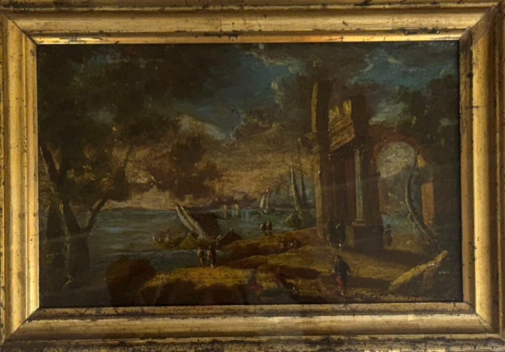 18th century school. Animated landscape. HSToile. 18 x 30 cm.