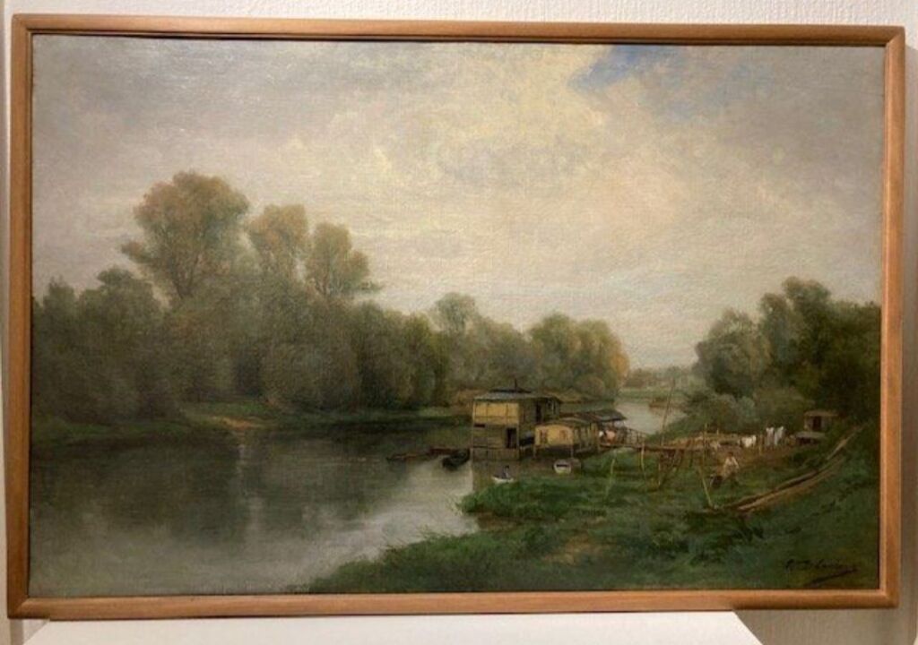 Louis Lucien D'EAUBONNE (1834-1894), Bateau lavoir sur la Seine , à Bas Meudon, circa 1890, oil on canvas signed lower right, canvas signed Donnet, Quai des Orfèvres , Paris, size: 62x95 cm + frame: 66x99cm, very good condition.