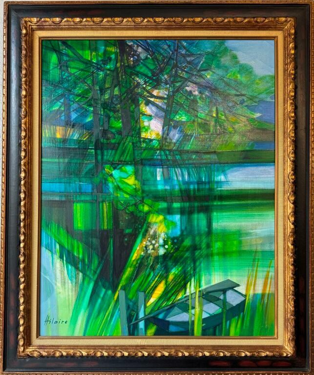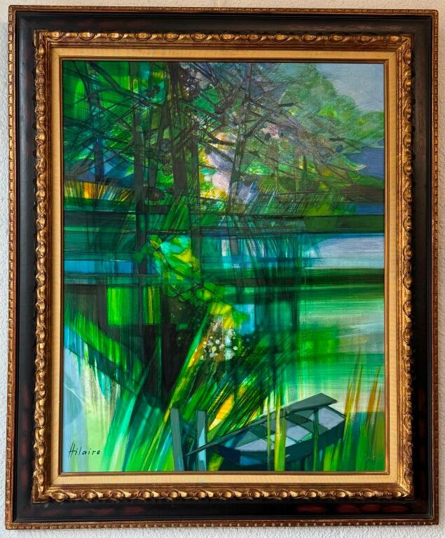 Camille Hilaire 1916-2004. The reflections of the pond. HSToile. Signed. 92 x 73 cm.