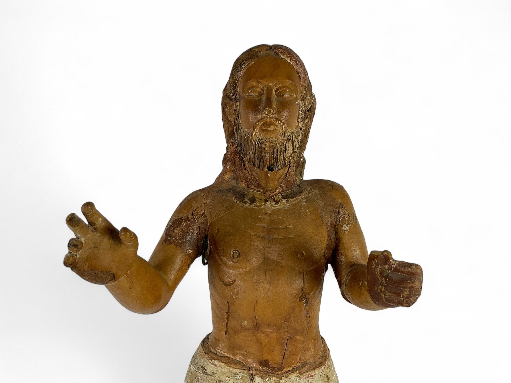 Hispanic colonies, 17th/18th century "Christ risen" In wood carved in the round with remains of polychromy. Hispanic colonies, 17th/18th century H: 86.5 cm (Minor accidents and missing pieces) Expert: Laurence FLIGNY