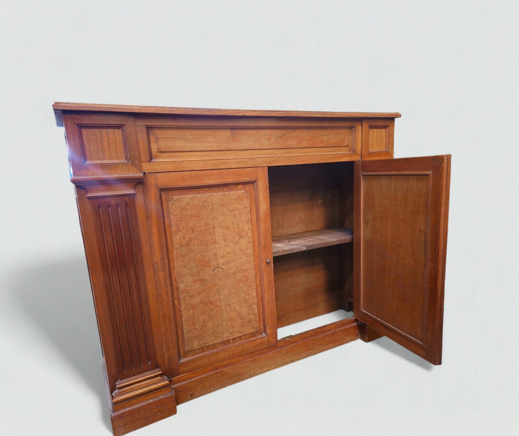 Mantel circa 1950/1960, Decorative wood mantel with moulded decor, fluted pilasters adorned with capitals. H: 89 cm - W: 127 cm - D: 33 cm.