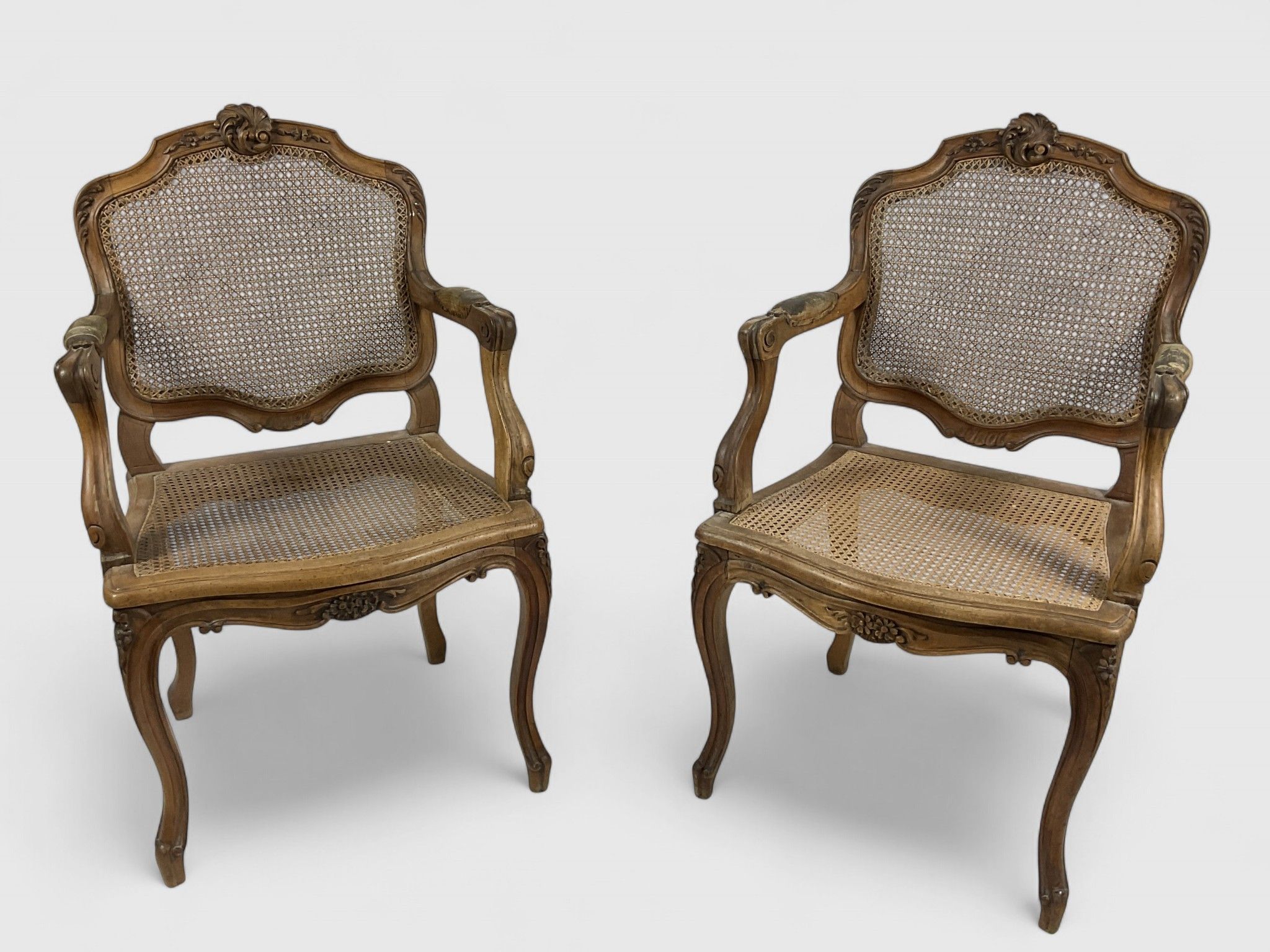 Pair of Regency-style armchairs In natural wood with cane ba…
