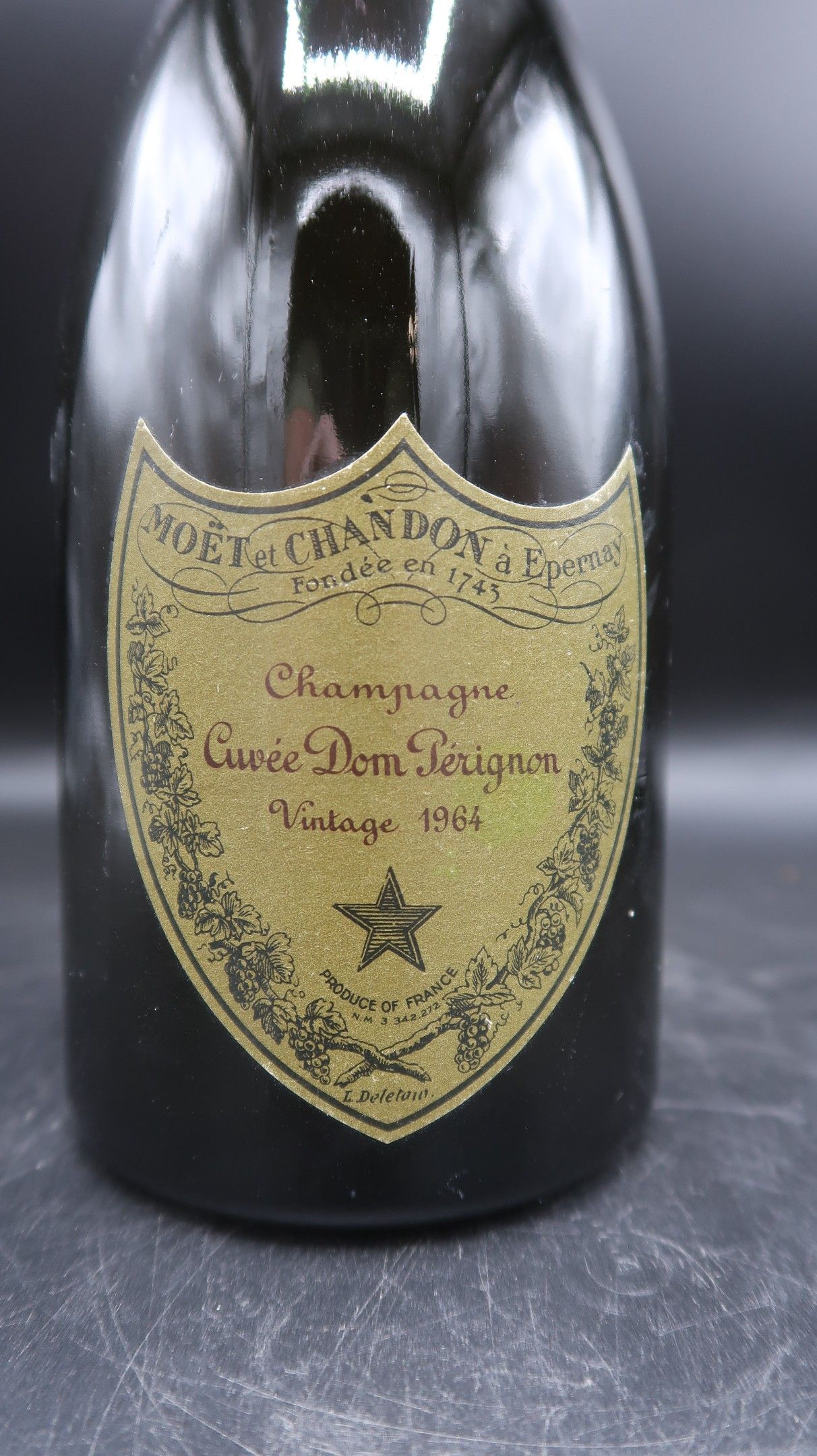 A bottle of Dom Pérignon Vintage 1964 champagne