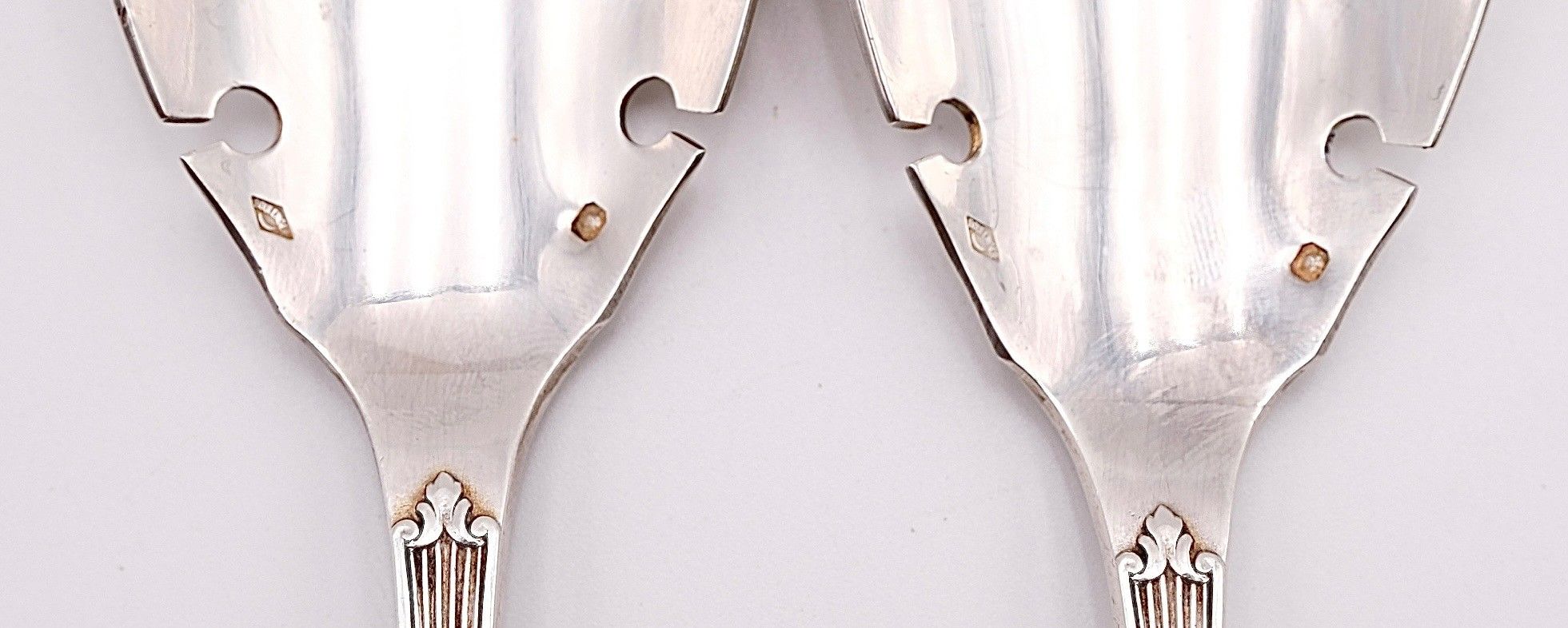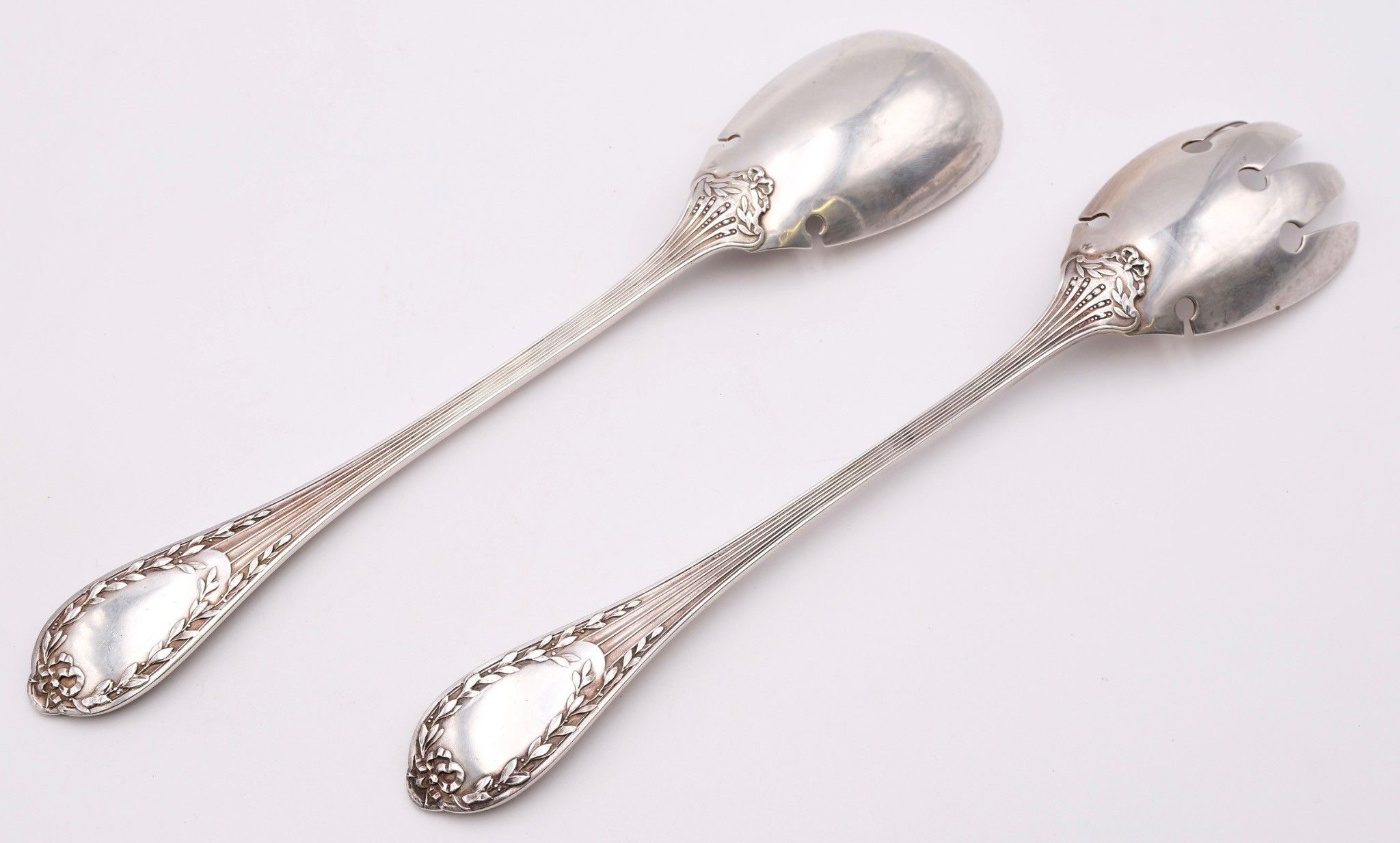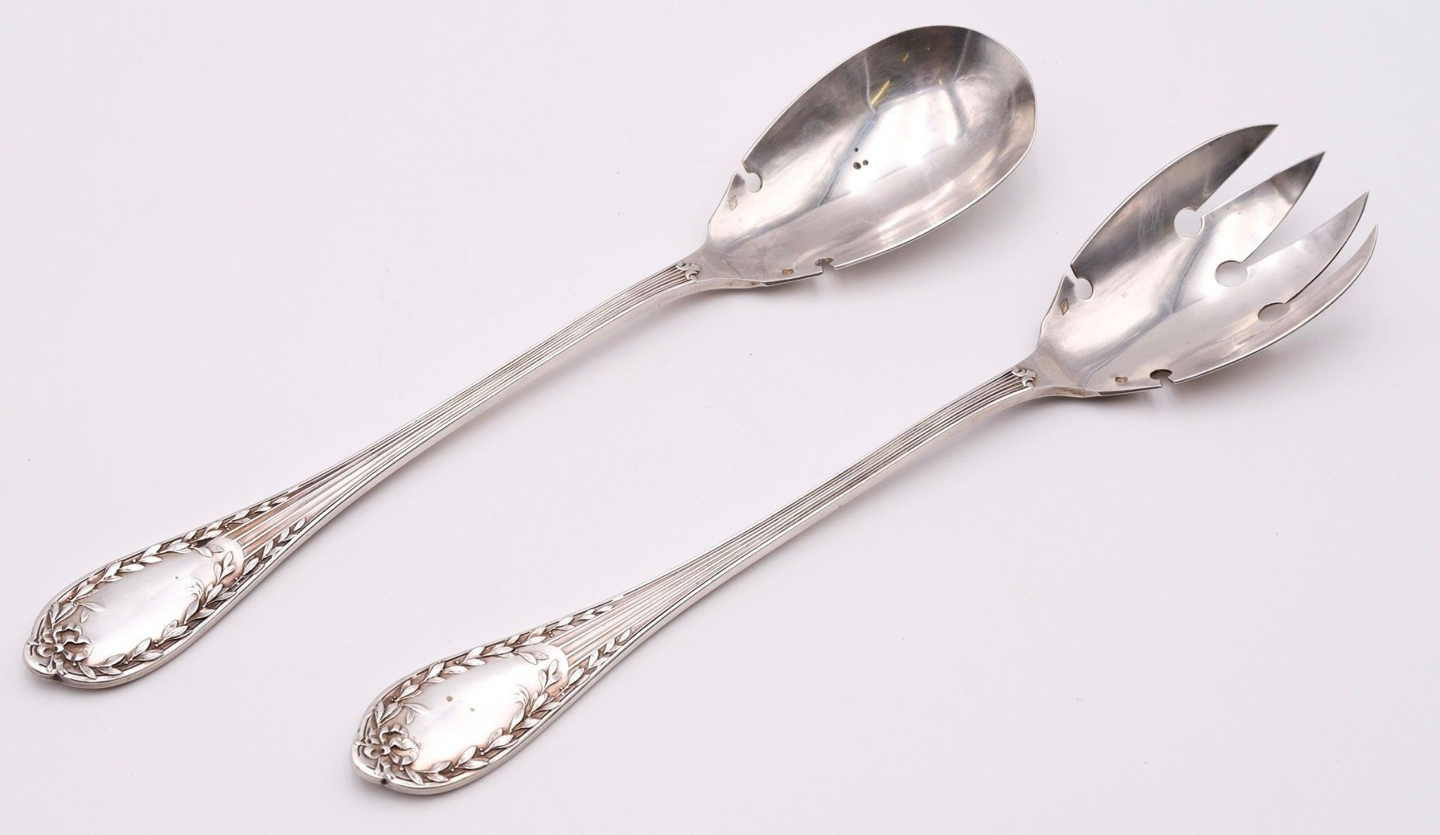 Salad service in silver (950°/°°) Minerve hallmark Title 1. The fluted handle decorated with laurel branches and ribbons.